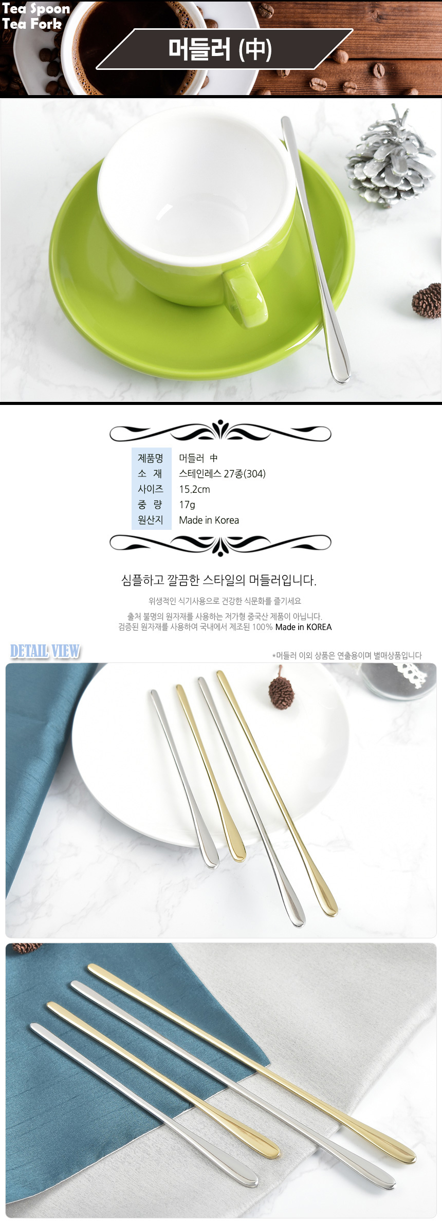 [HAEMO] Muddler (Middle) _ Reusable Stainless Steel, Tableware Home, Tea spoon _ Made in KOREA