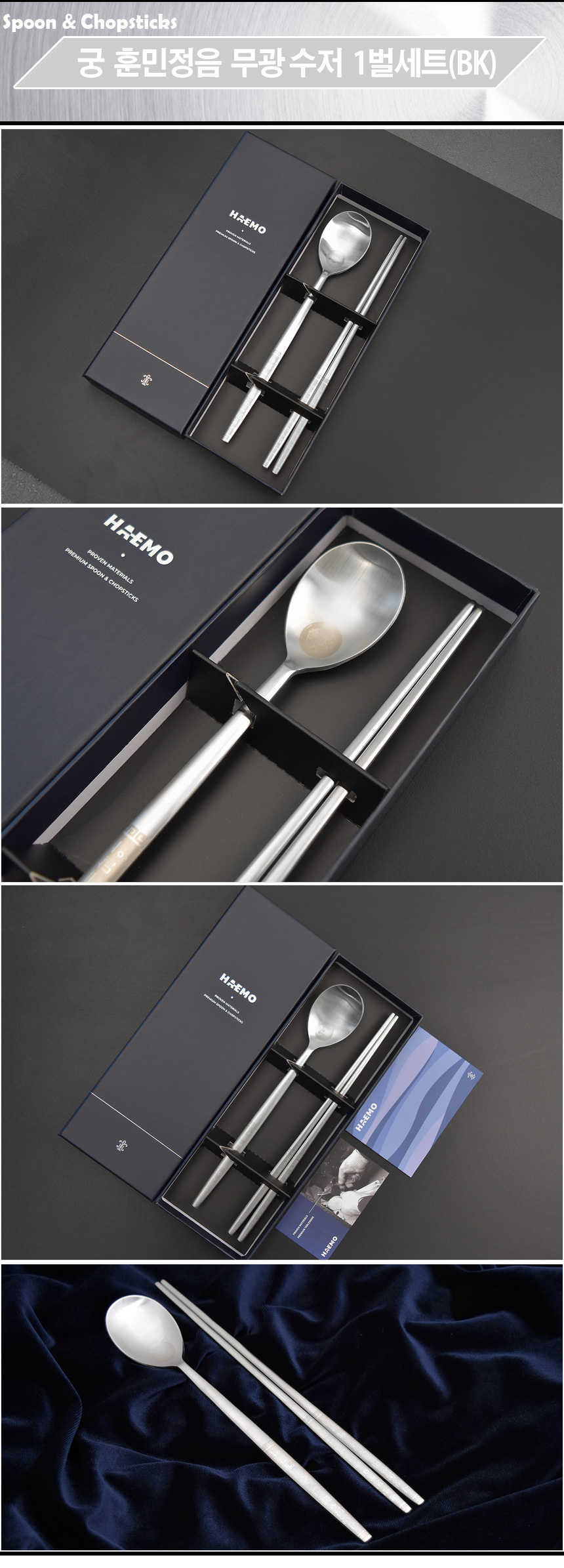 [HAEMO] Royal Hunminjeongeum Matte Spoon Chopsticks 1Set-Spoon Chopsticks Korean Stainless Steel Cutlery-Made in Korea