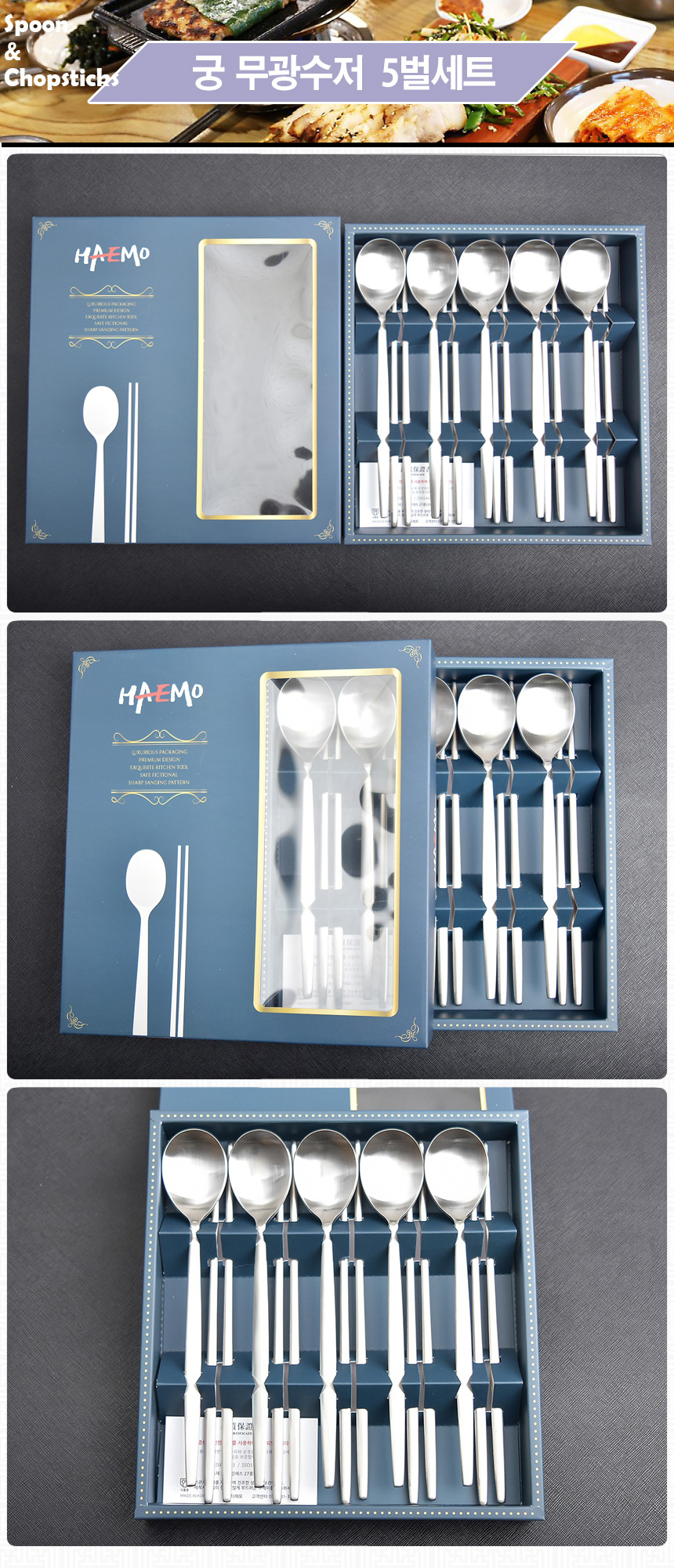 [HAEMO] Royal Matte Spoon Chopsticks 5Set _ Reusable Stainless Steel Korean Chopstix Spoon Tableware Home, Kitchen or Restaurant