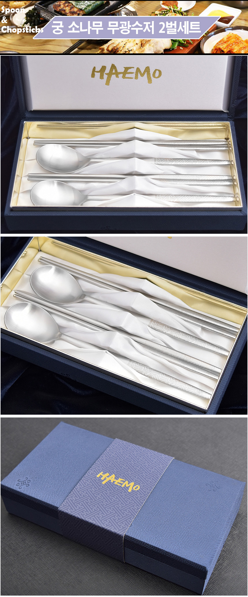 [HAEMO] Royal Pine, Matte, Spoon Chopsticks, 2 Set (Silk box) _ Reusable Stainless Steel, Korean Chopstick Spoon _ Made in KOREA