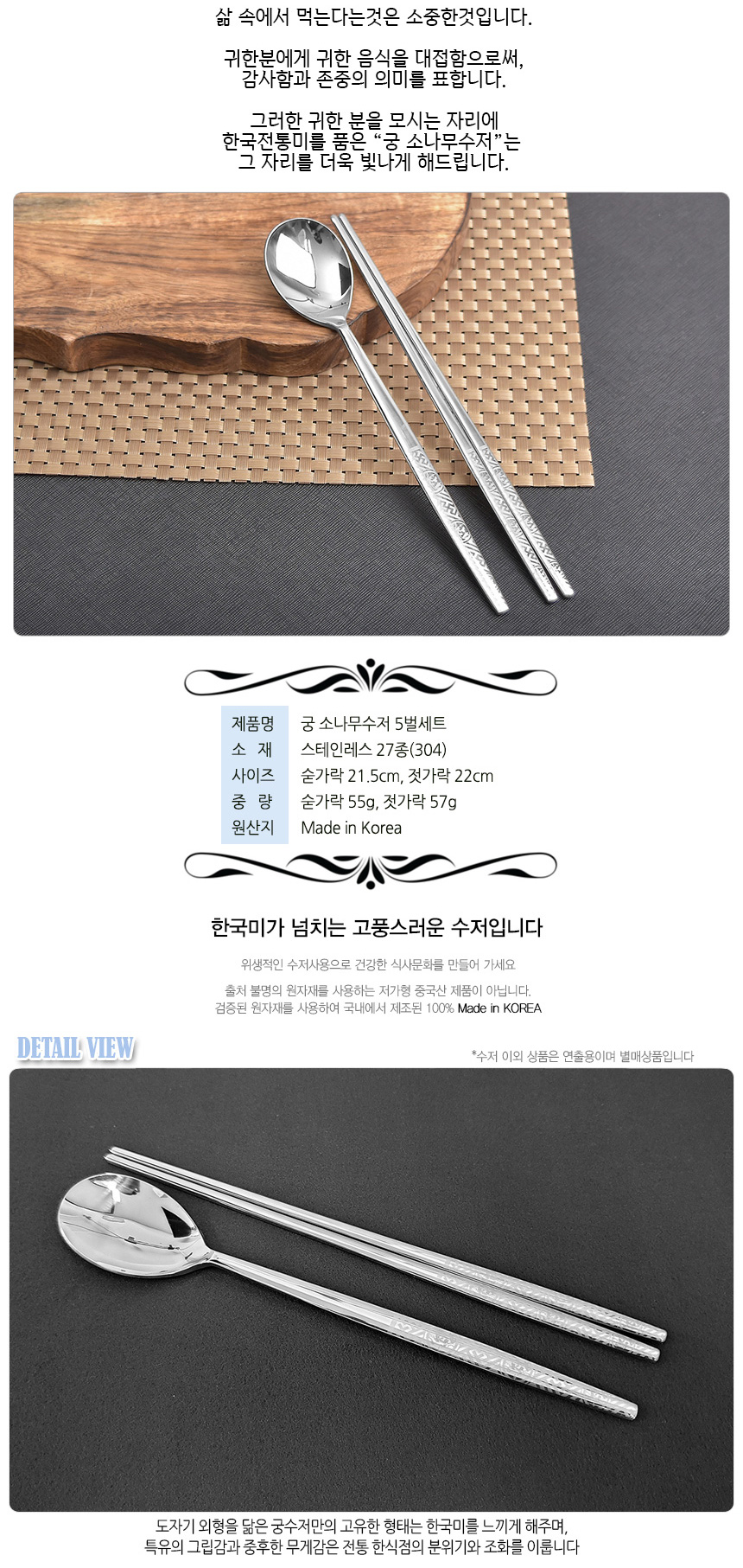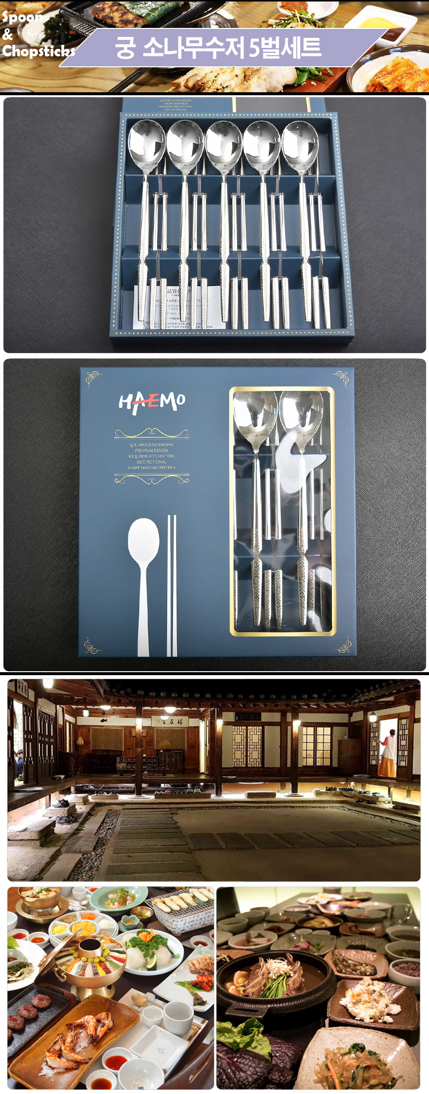 [HAEMO] Royal Pine Spoon Chopsticks 5 Set _ Reusable Stainless Steel, Korean Chopstick, Spoon _ Made in KOREA