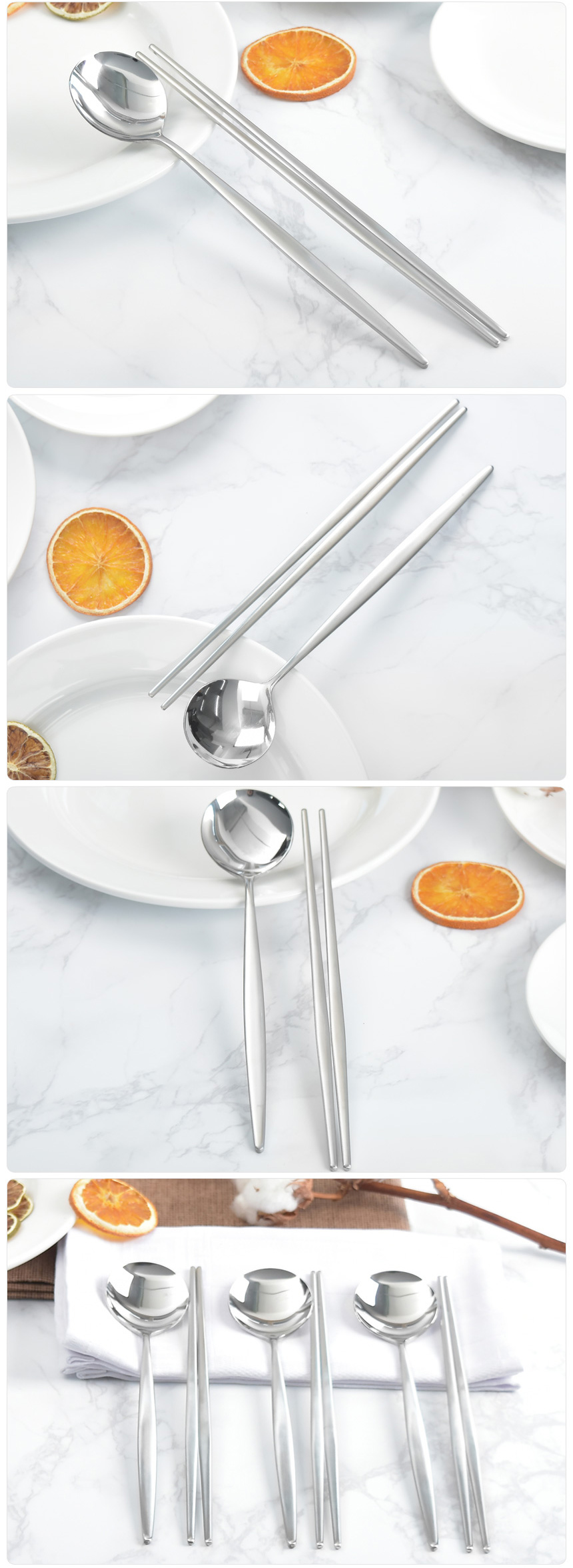 Korean Style : The soup spoon has a wide and round head, smooth edge without rough spots and will never cut your hands and mouth.The chopsticks reusable have lightweight & non-slip design, let you pick up more easily, more comfortable; Heat resistant and easy to grip.