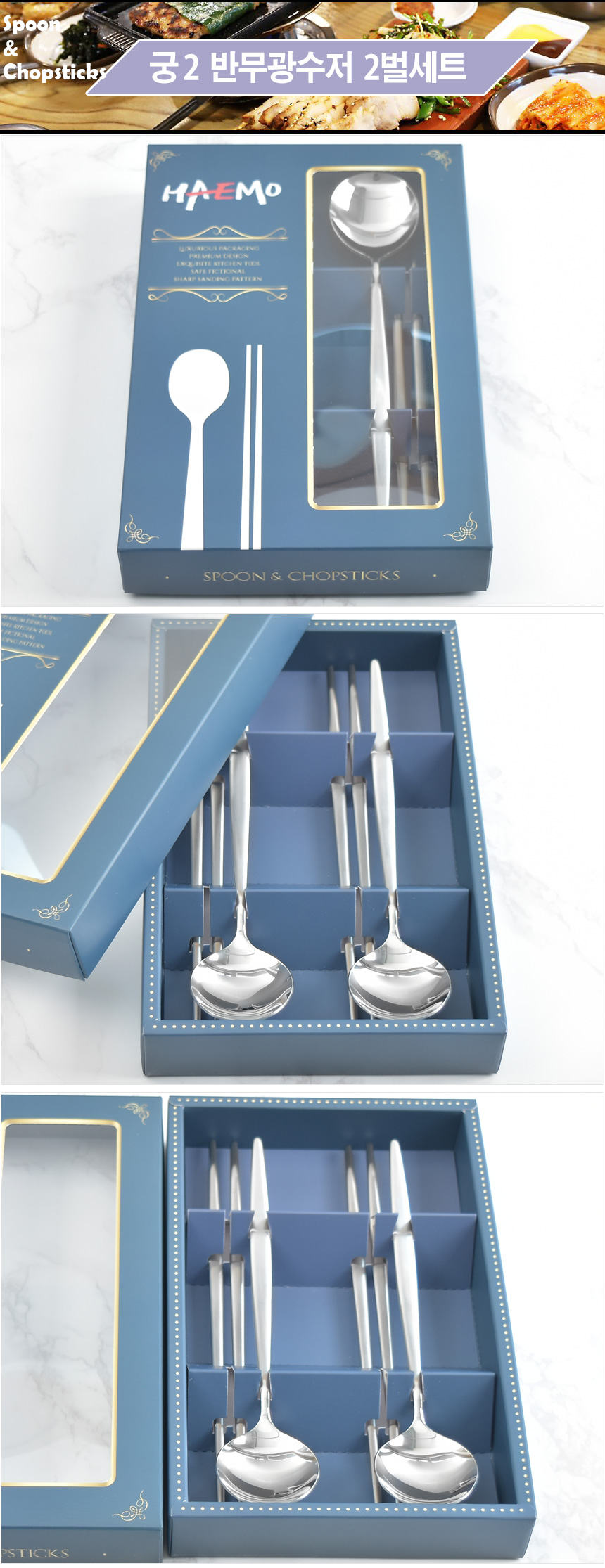 [HAEMO] Royal2 semi-matte Spoon Chopsticks 2Set _ Reusable Stainless Steel Korean Chopstix Spoon Tableware Home, Kitchen or Restaurant
