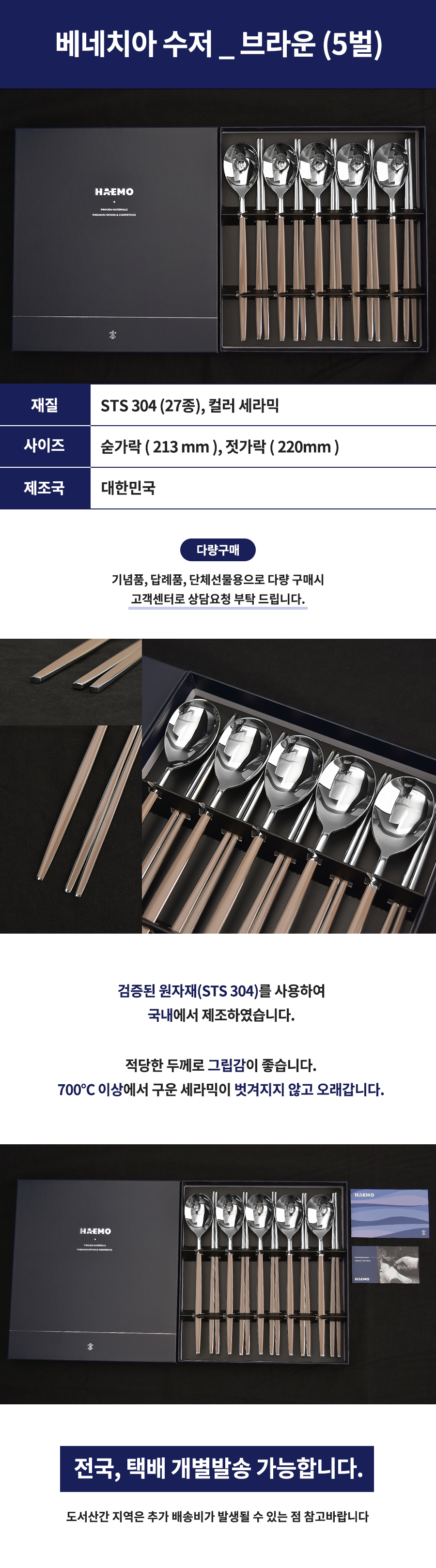 [HAEMO] Venezia Spoon Chopsticks, Brown 5 Set (BK) _ Reusable Stainless Steel, Korean Chopstick Spoon _ Made in KOREA