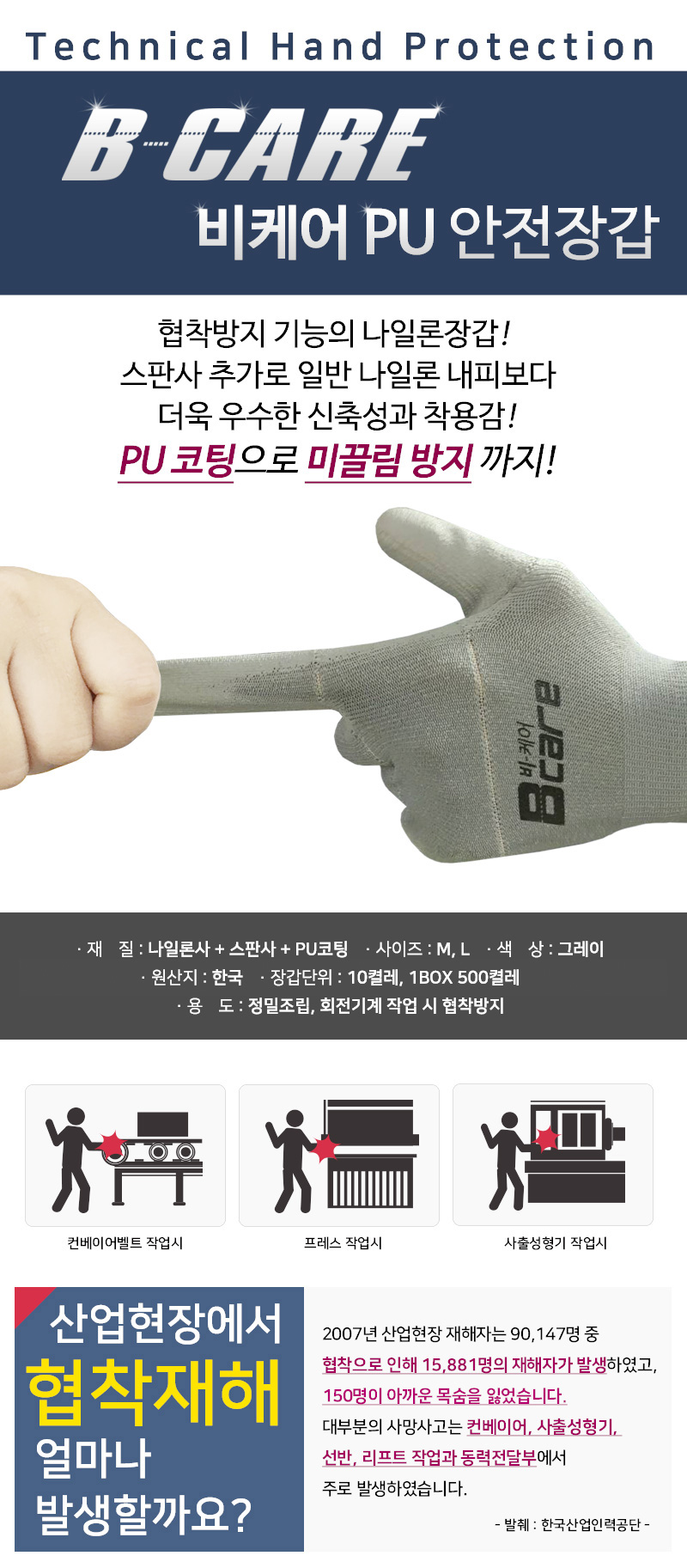 HANDMAX B-Care Anti-Stenosis Gloves NO.114, Tear, Knurled Perforated Line Gloves, Nylon, Spandex, PU Foam Coating