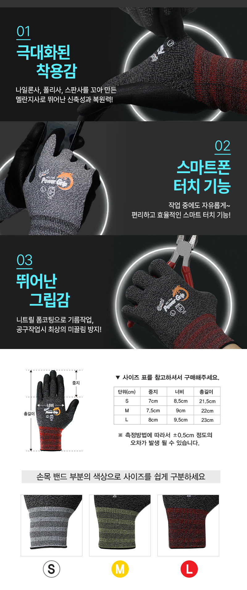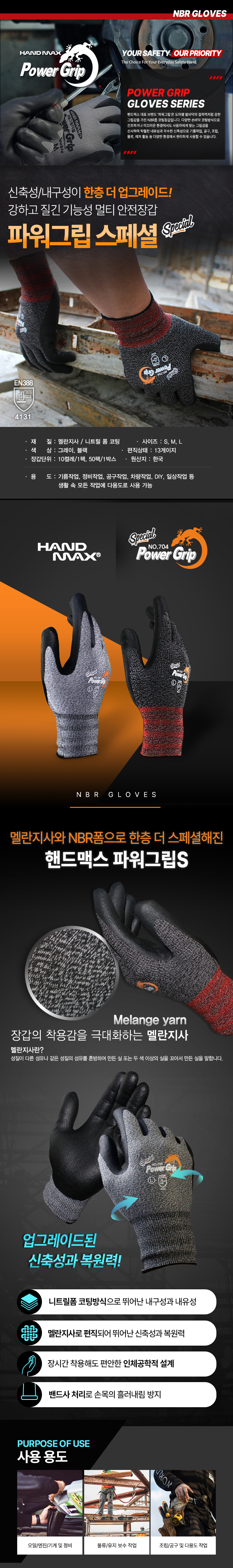 HANDMAX Power Grip Multi Gloves Special - Gray NO.704 (10 pairs) Nitrile foam coating, Melange yarn, 13G, smartphone touch