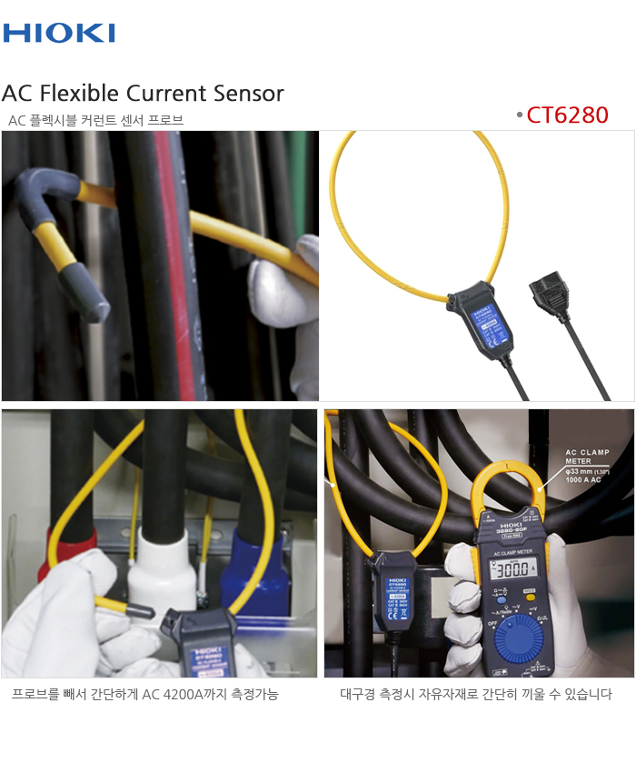 HIOKI AC FLEXIBLE CURRENT SENSOR CT6280, For large diameter and large current measurement in combination with AC clamp meter
