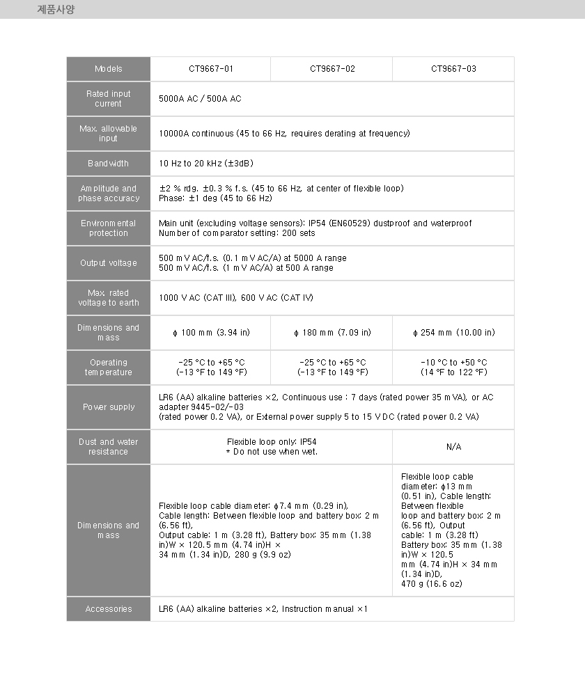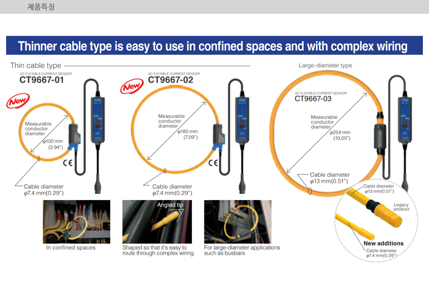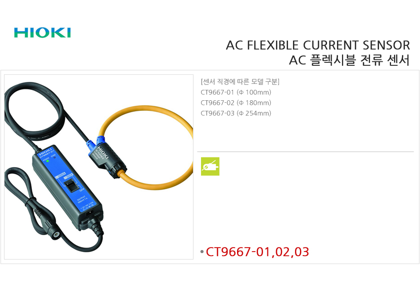 HIOKI AC FLEXIBLE CURRENT SENSOR CT9667-01, CT9667-02, CT9667-03, Easy to Loop Around, Even in Confined Spaces (Φ100mm~Φ254mm)