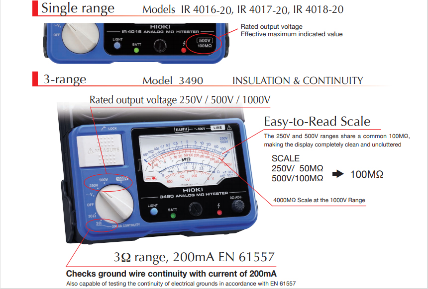 HIOKI ANALOG MΩ HiTESTER IR4016-20, Reliable and Efficient Insulation Testing in the Field