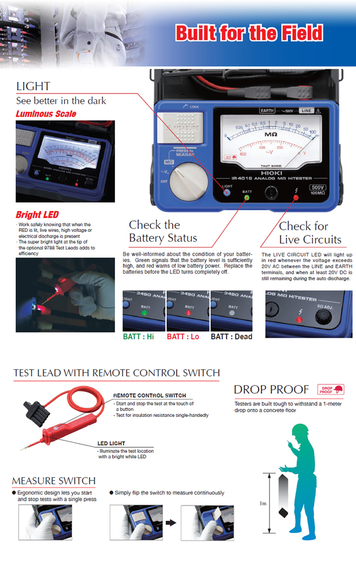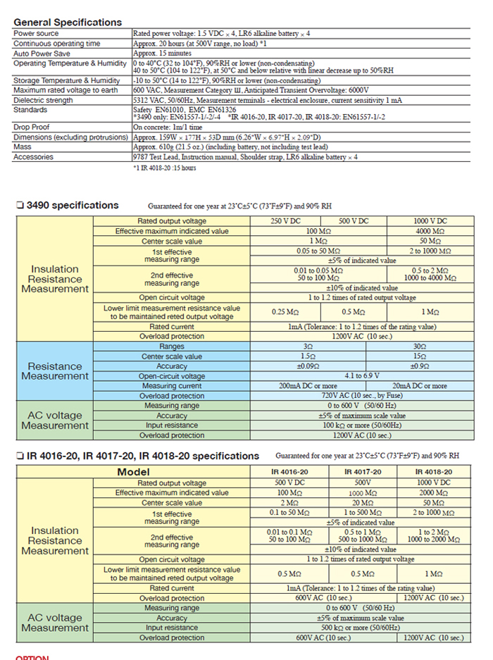 HIOKI ANALOG MΩ HiTESTER IR4018-20, Reliable and Efficient Insulation Testing in the Field