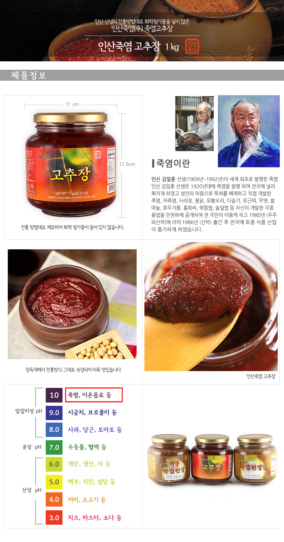 - It is a bamboo salt red pepper paste that is directly soaked in conventional methods using sun-dried red pepper, 9 times bamboo salt, and glutinous rice as the main ingredients. Due to the high content of glutinous rice, it is soft and more spicy with umami.
