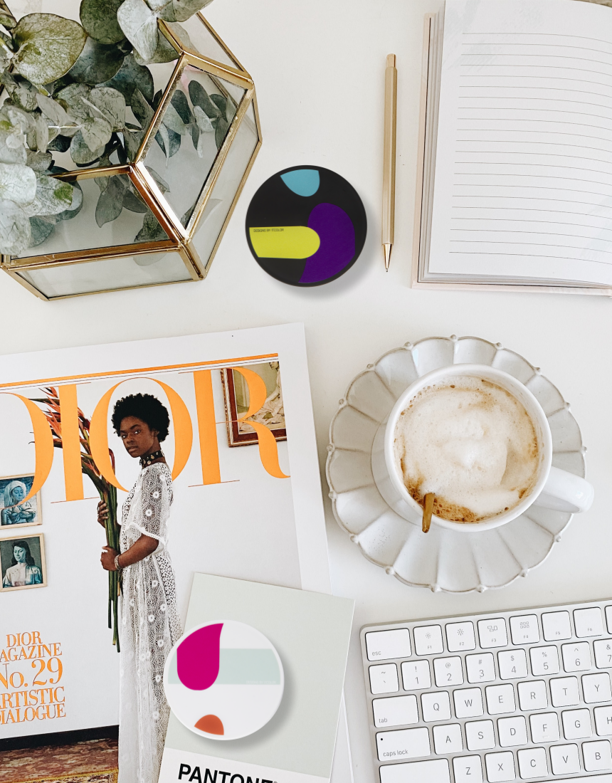 [ItColor]Magnifying Compact Cosmetic Mirror-’ITCOLOR’ unique Compact Pocket Makeup Mirror, Handheld Travel Makeup Mirror with Powerful 2x Magnification and 1x True View Mirror for Travel or Your Purse (Round White,Black)