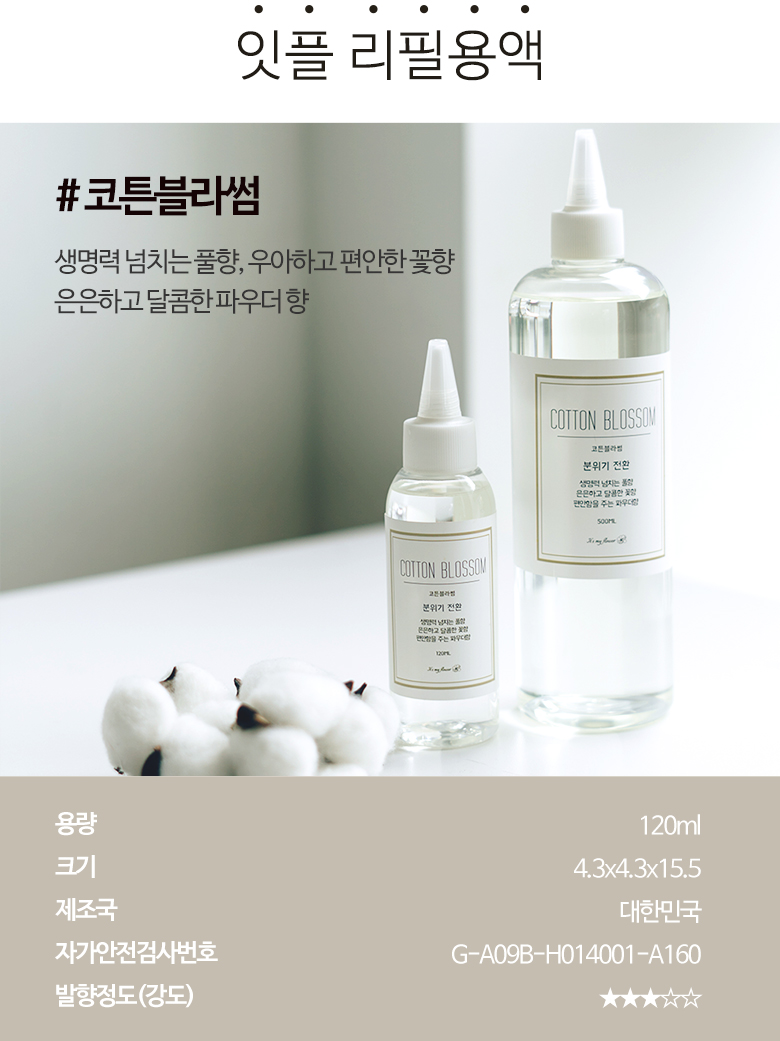 [It's My Flower] Diffuser solution Cotton Blossom refill liquid 120ml, Air Freshener