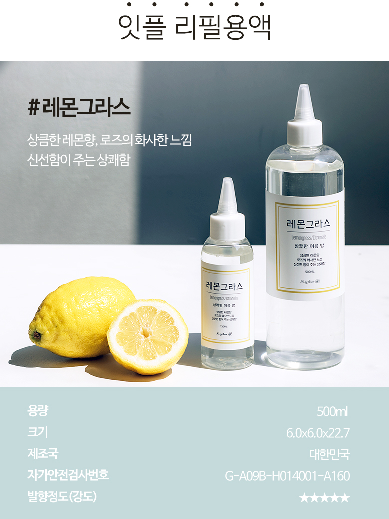 [It's My Flower] diffuser solution Lemongrass refill liquid 500ml, Air Freshener