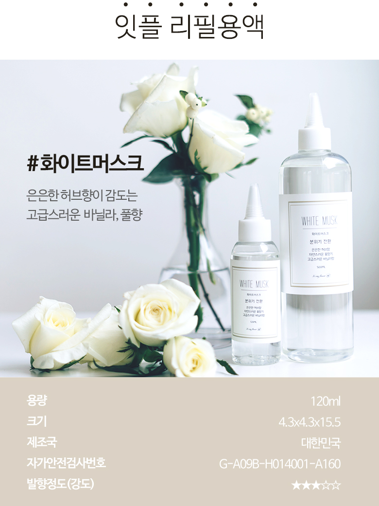 [It`s My Flower] Diffuser solution refill liquid White Musk. 120ml, Air Freshener
