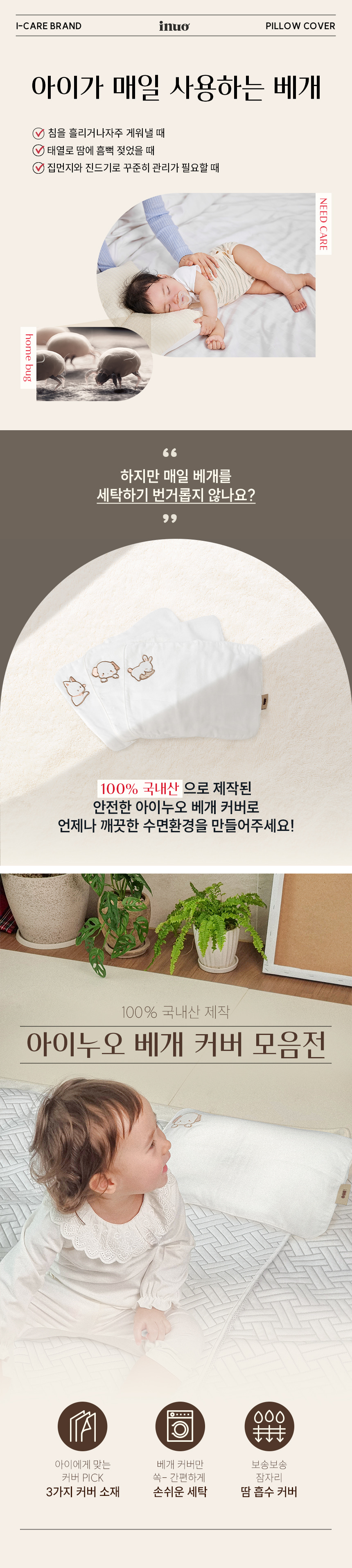 [Kinder Palm] AINUO Baby Pillow Cover – Specialized Cover for Newborn Flat Head Pillow _ Made in Korea