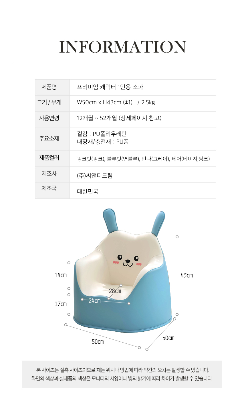 [Lieto_Baby] Lieto Character Baby Sofa, Blue, Single_ Baby Furniture, Kids Chair, Toddler Couch, Non-Toxic Material _ Made in KOREA