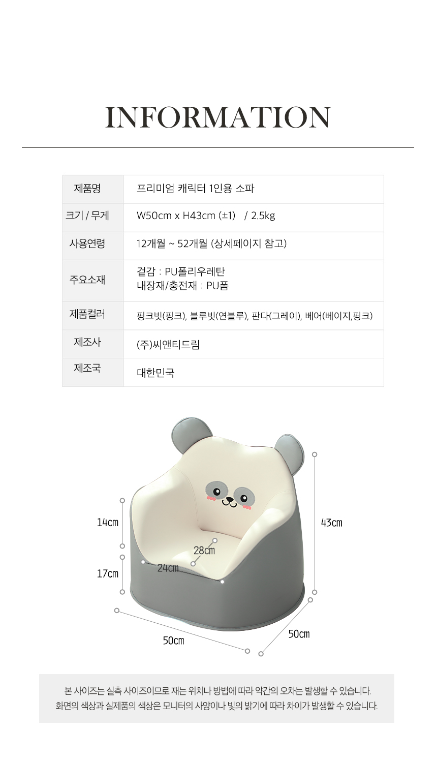 [Lieto_Baby] Lieto Character Baby Sofa, Panda, Single_ Baby Furniture, Kids Chair, Toddler Couch, Eco-Friendly Material _ Made in KOREA