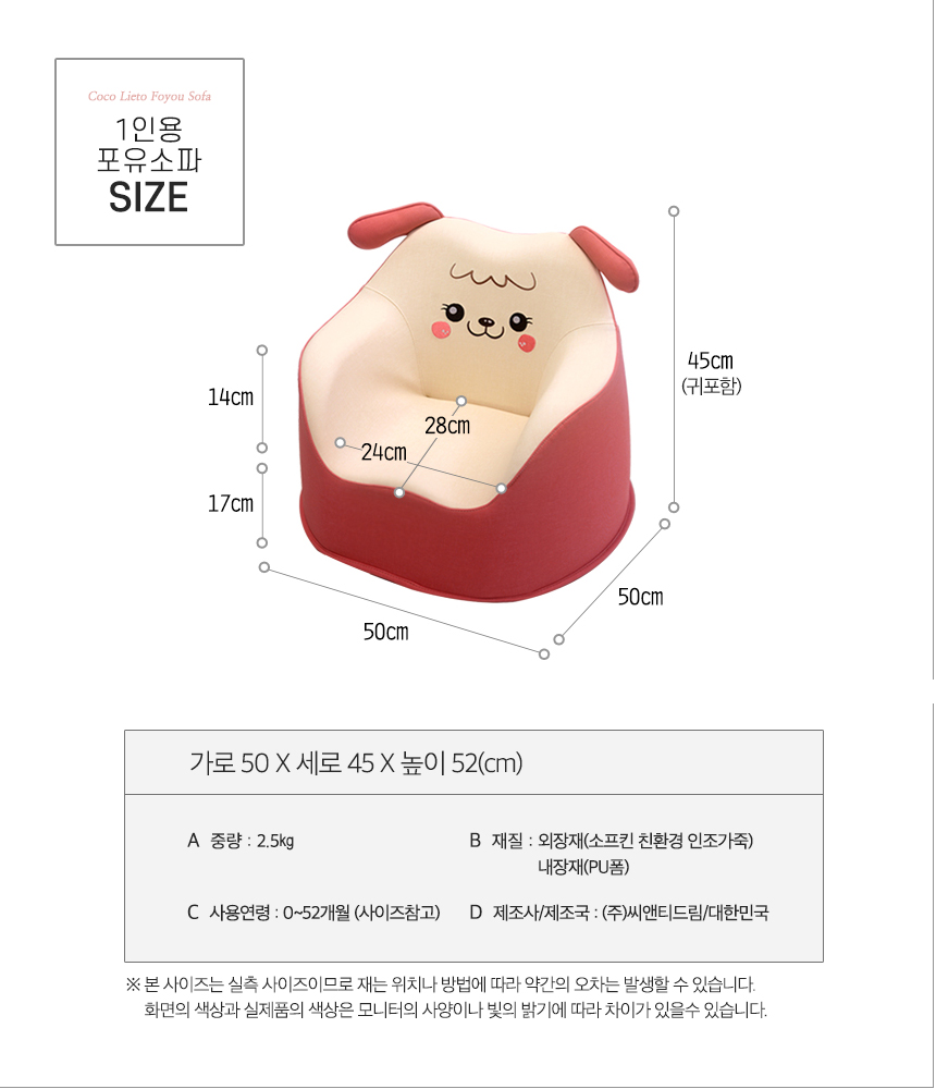 [Lieto Baby] COCO LIETO Poyu Character Baby Sofa for 1 Person, Funny_Correct Posture, Toddler Sofa, Posture Education _Made in Korea