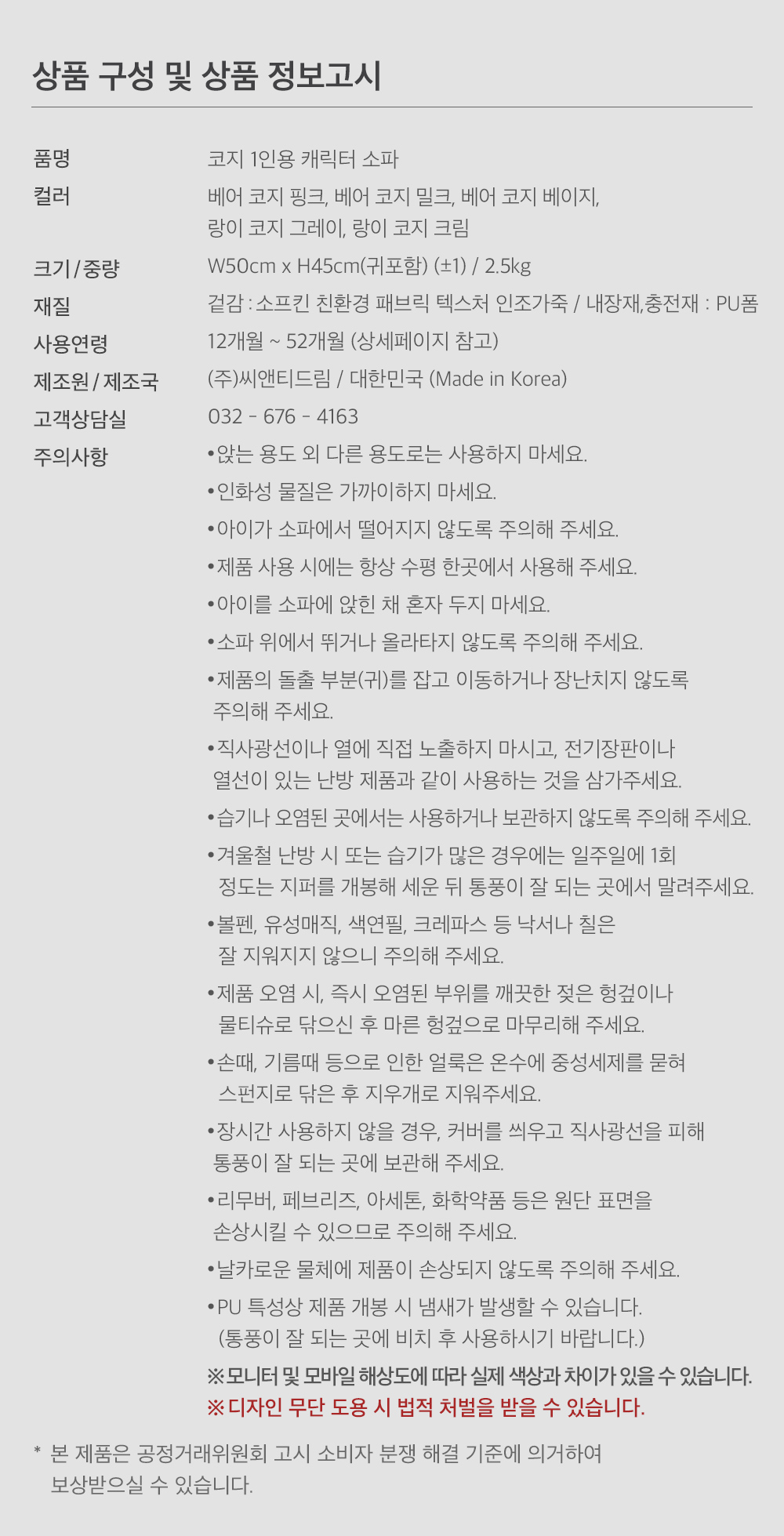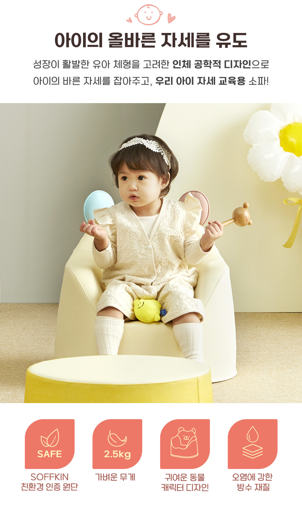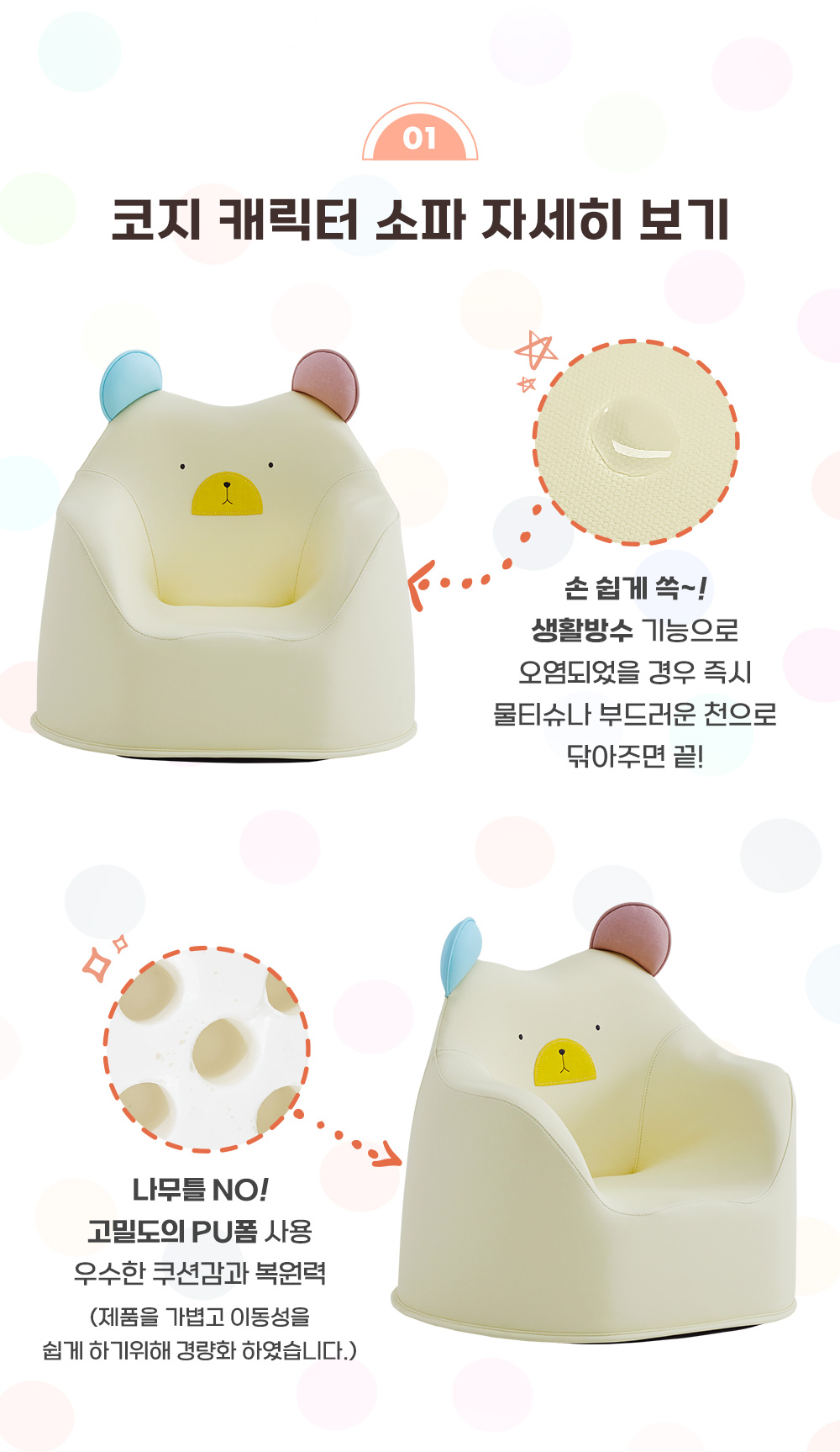 [Lieto Baby] COCO LIETO Cozy Character Baby Sofa for 1 person_Correct posture, toddler sofa, PU fabric, waterproof _Made in Korea