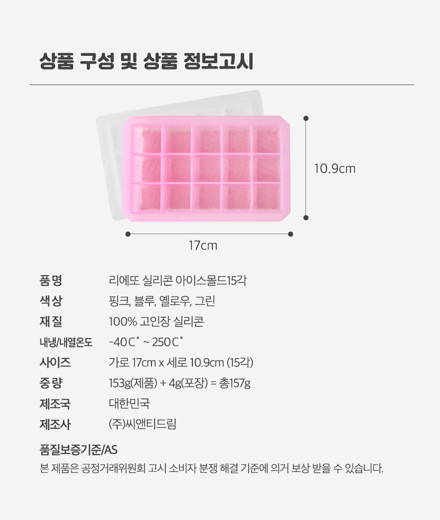[Lieto_Baby]Lieto Silicone Ice Mold 15 Cubes_Embossing non-slip function_Made in KOREA