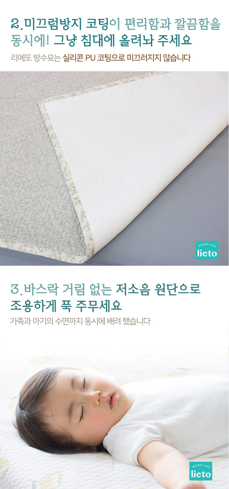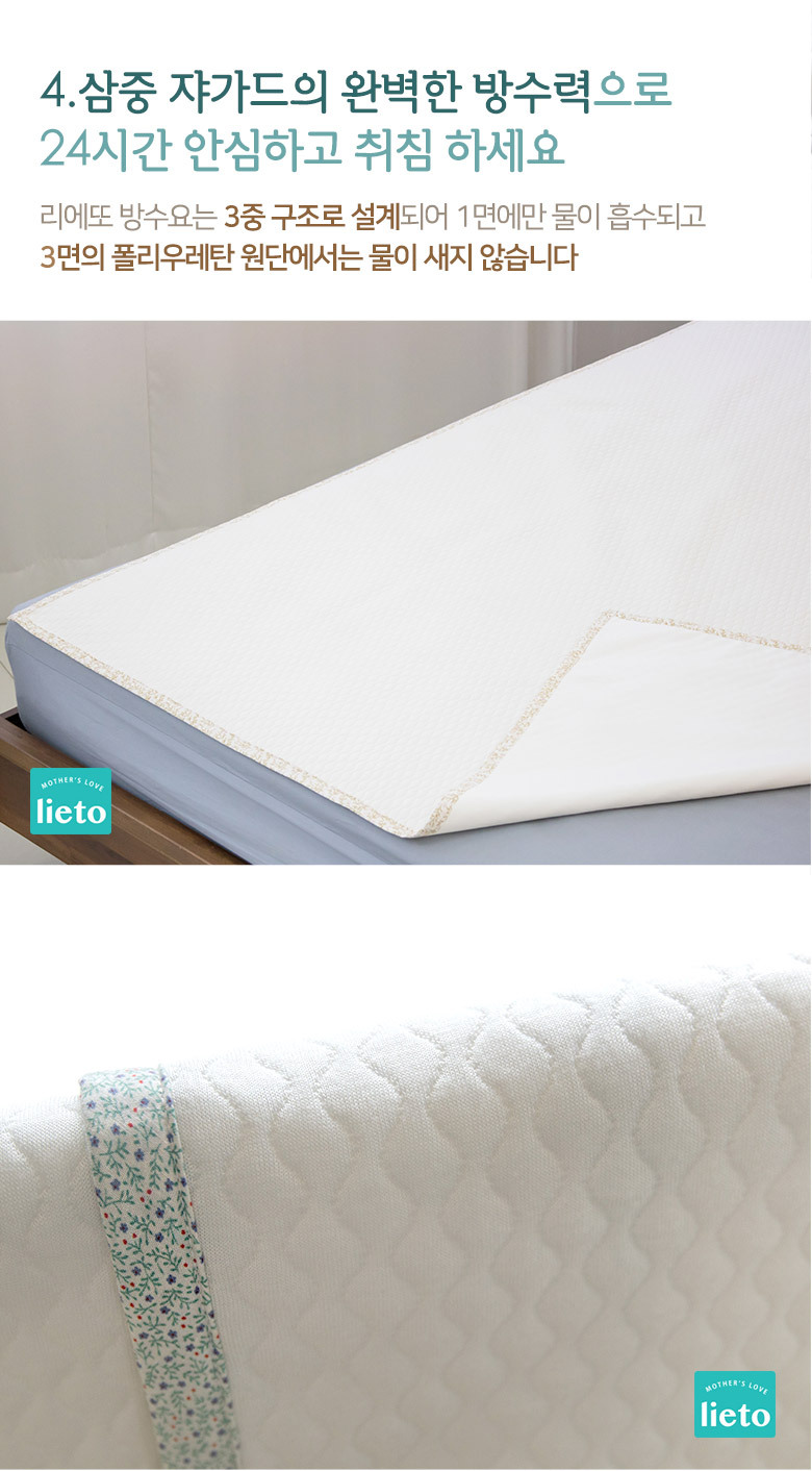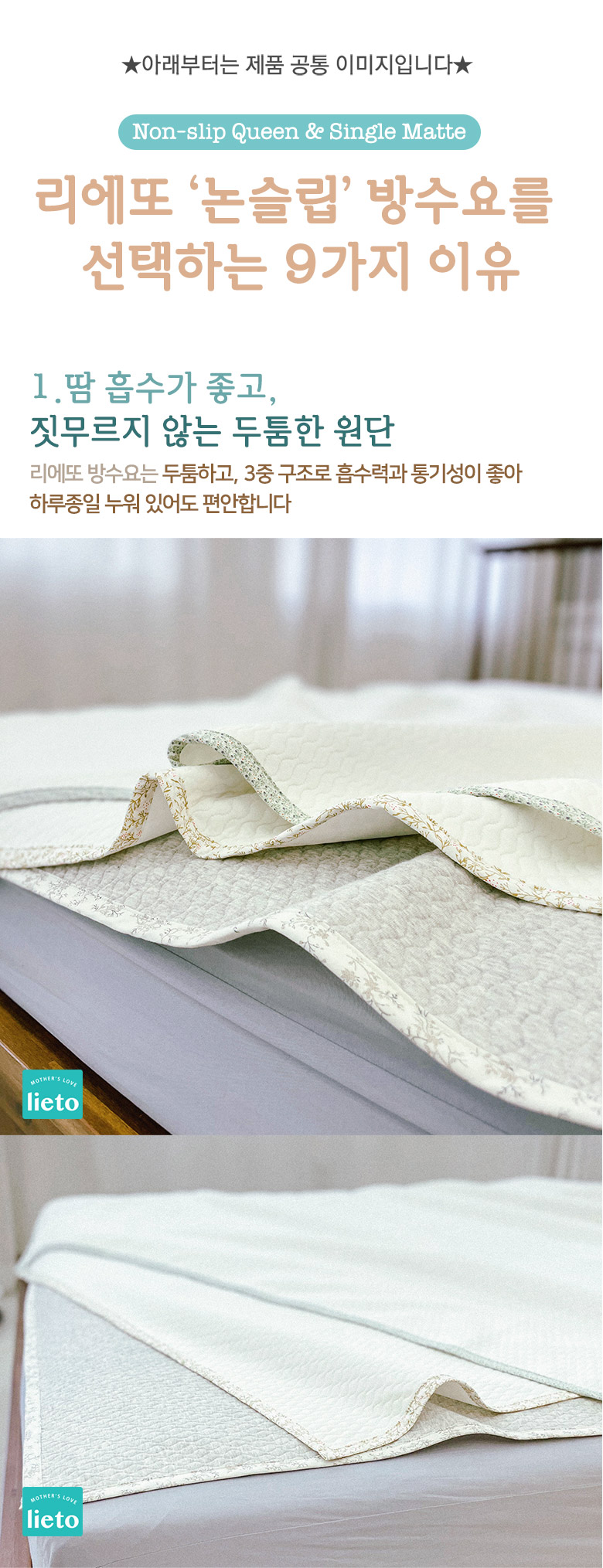 [Lieto_Baby] Nonslip Non-Fluorescent Waterproof Baby Bed Pad Queen Size For All Seasons Cotton 100% _ Made in KOREA
