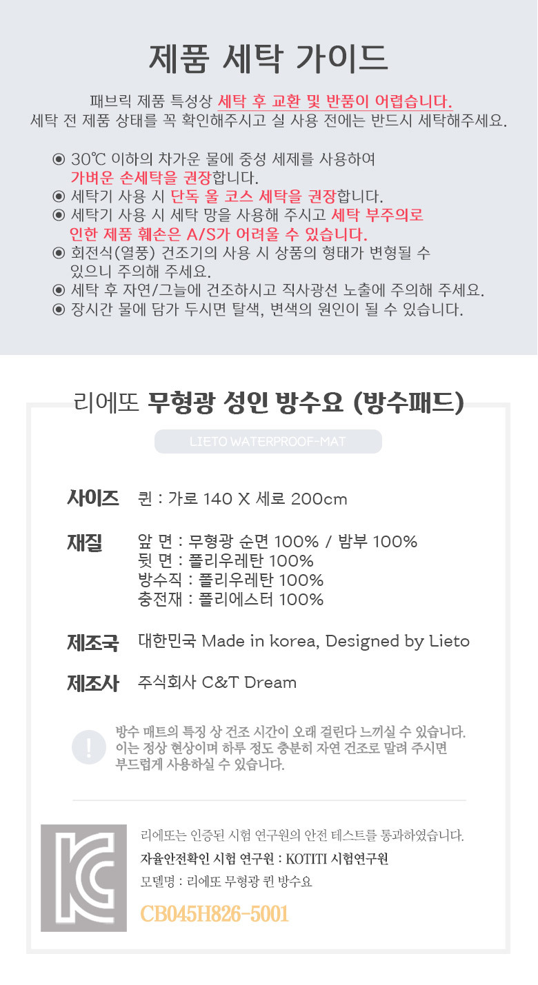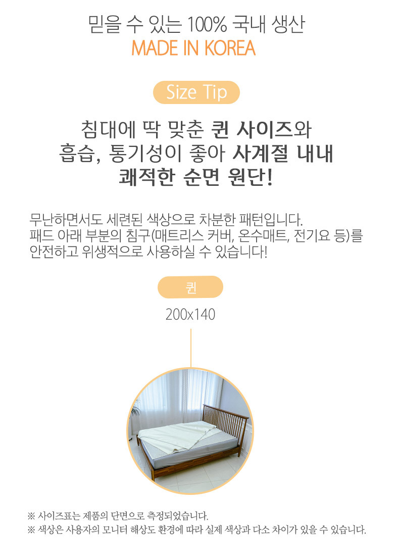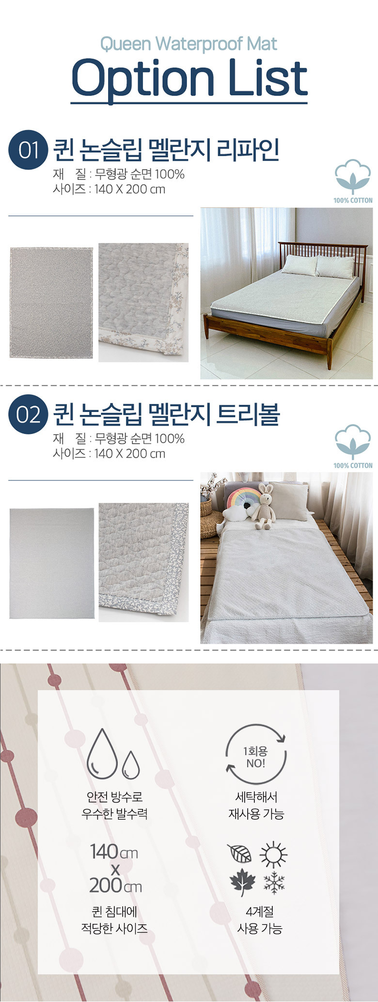 [Lieto_Baby] Nonslip Non-Fluorescent Waterproof Baby Bed Pad Queen Size For All Seasons Cotton 100% _ Made in KOREA