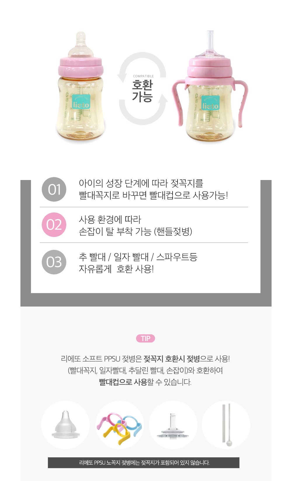 [Lieto_Baby] Soft PPUS Baby Bottle 200ml + 300ml 1+1 Nipple Twin Pack_BPA-free, safe PPSU, hot water sterilization possible_ Made in KOREA