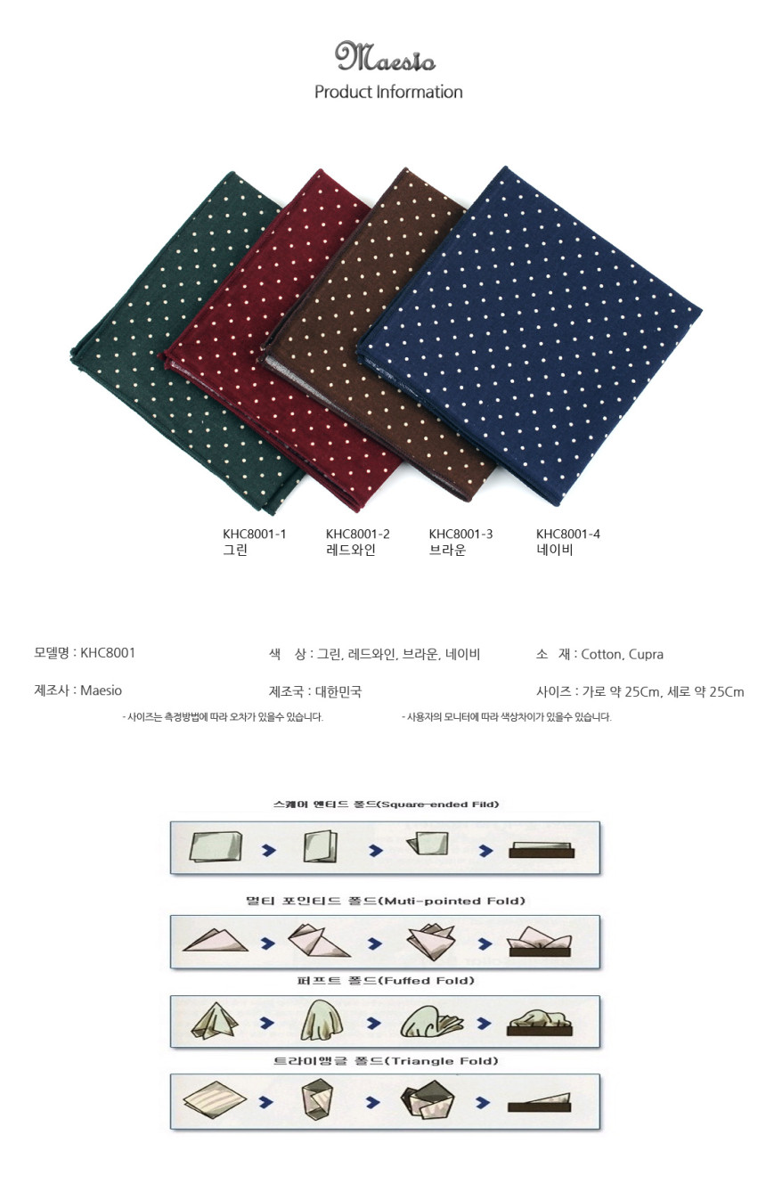 [MAESIO] KHC8001 Handkerchief Dot_ Men's Handkerchief Mens Pocket Squares, Made in Korea