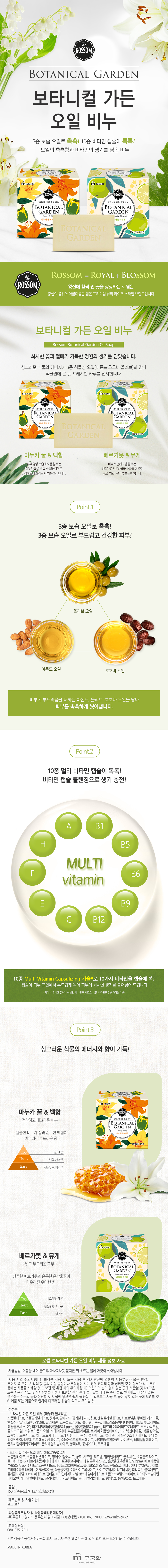 [Mugunghwa] NEW Rossom Botanical Garden Oil Soap – Bergamot & Lily of the Valley, Manuka Honey & White Lily, 150g × 4 bars _ Made in Korea