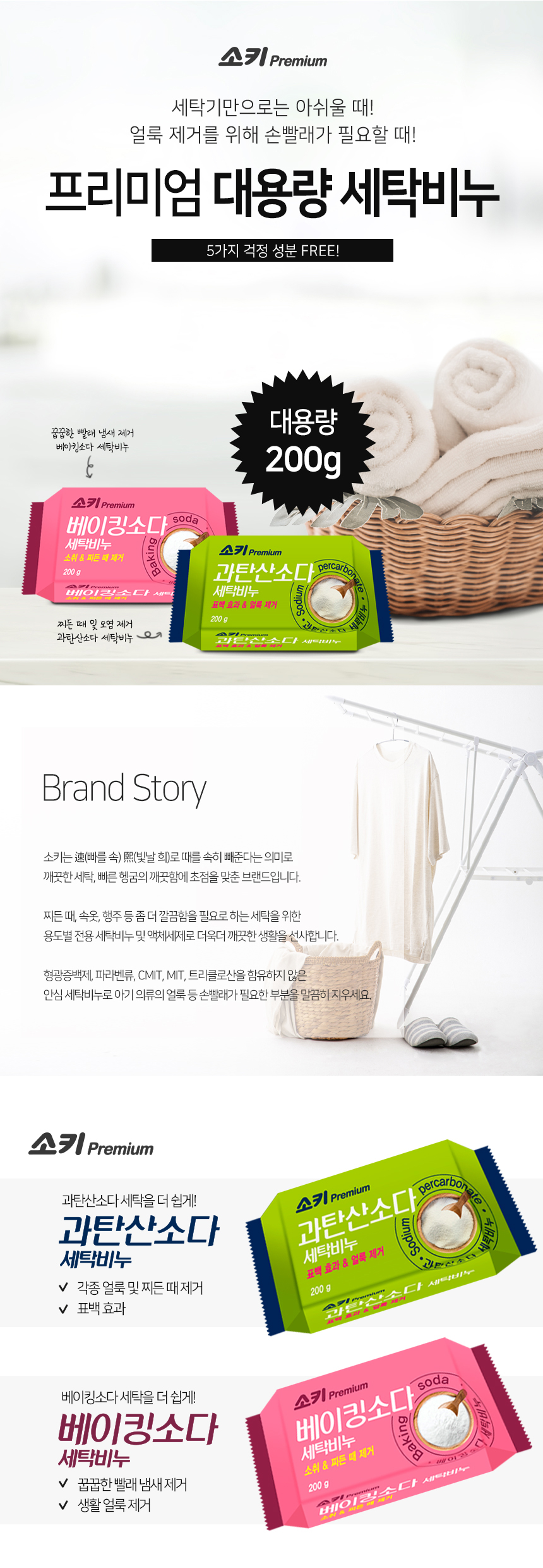 MUKUNGHWA SOKI Baking Soda Laundry Bar Soap 200g – Remove Laundry Odor, Powerful Stain Removal & Brightening with Hand-Safe Moisturizing Formula _ Made in KOREA