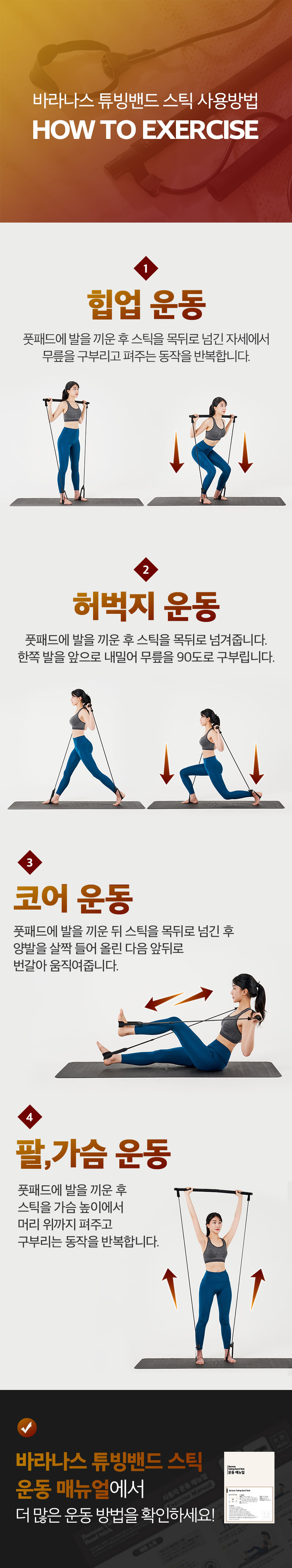 [MURO] BARANAS Tubing band stick, Adjustable intensity, whole body muscle exercise, Detachable for easy storage and carrying, Adjustable to fit the body. Gym stick, Pull-up band