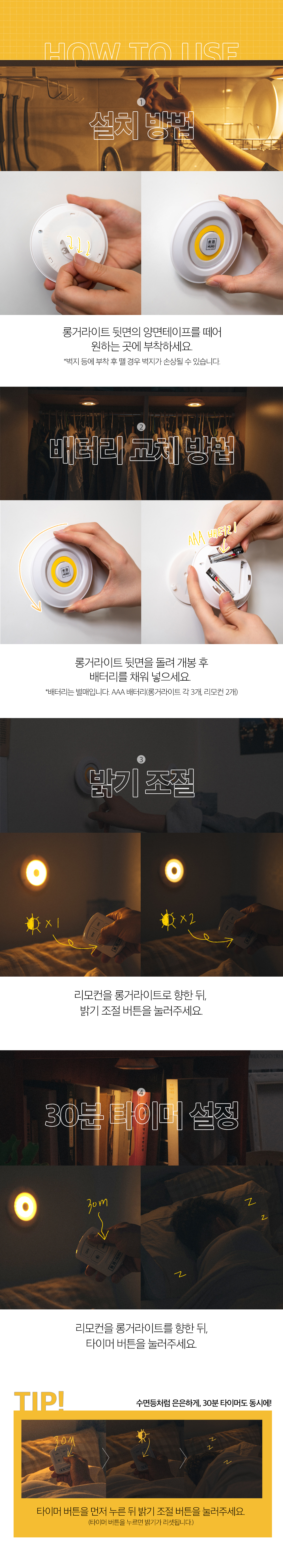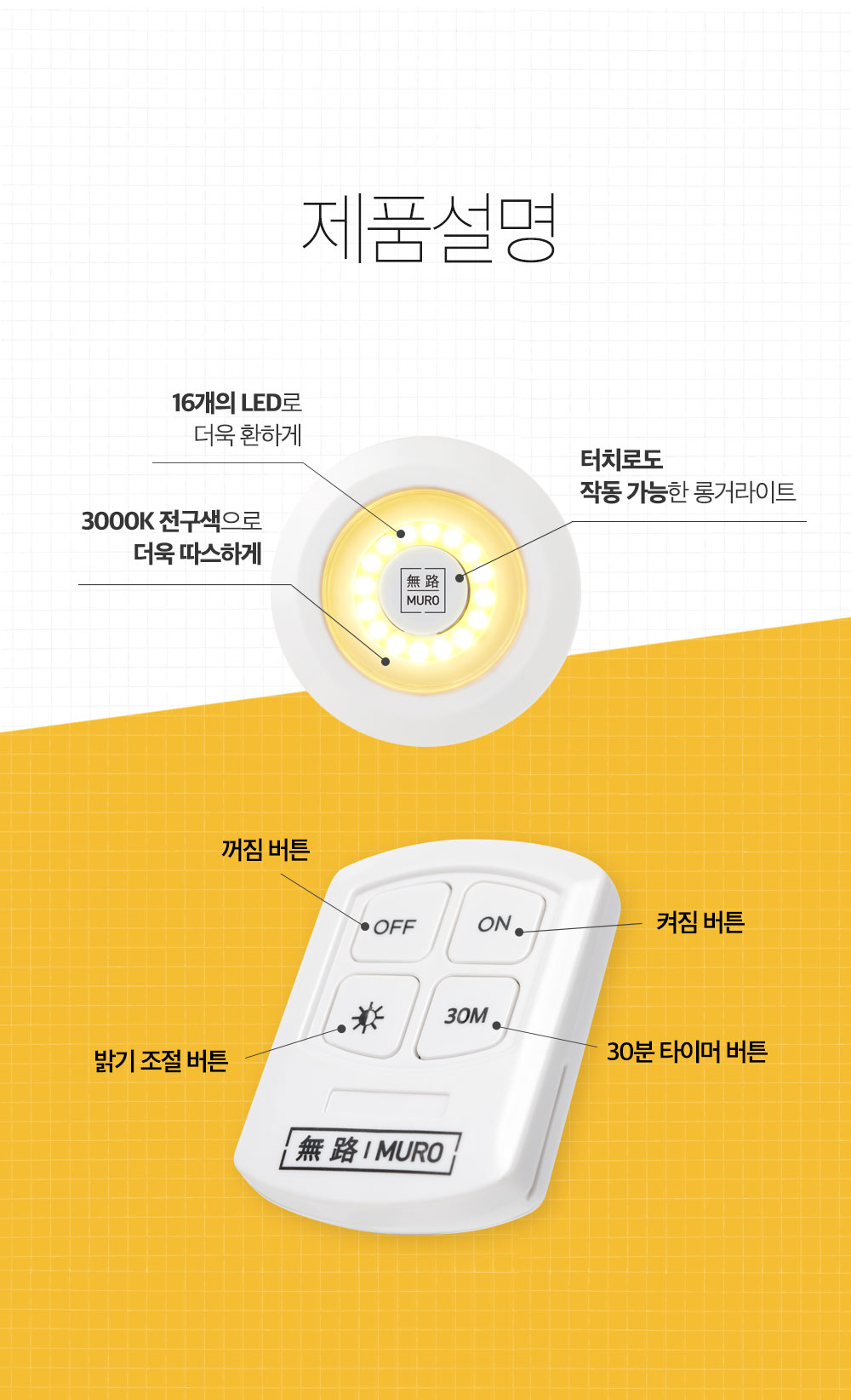 [MURO] Longer lights, 1 set (3 lights, 1 remote control). simple installation. On/off and brightness adjustable by remote control. LED sleepping light illuminates the dark night. mood light