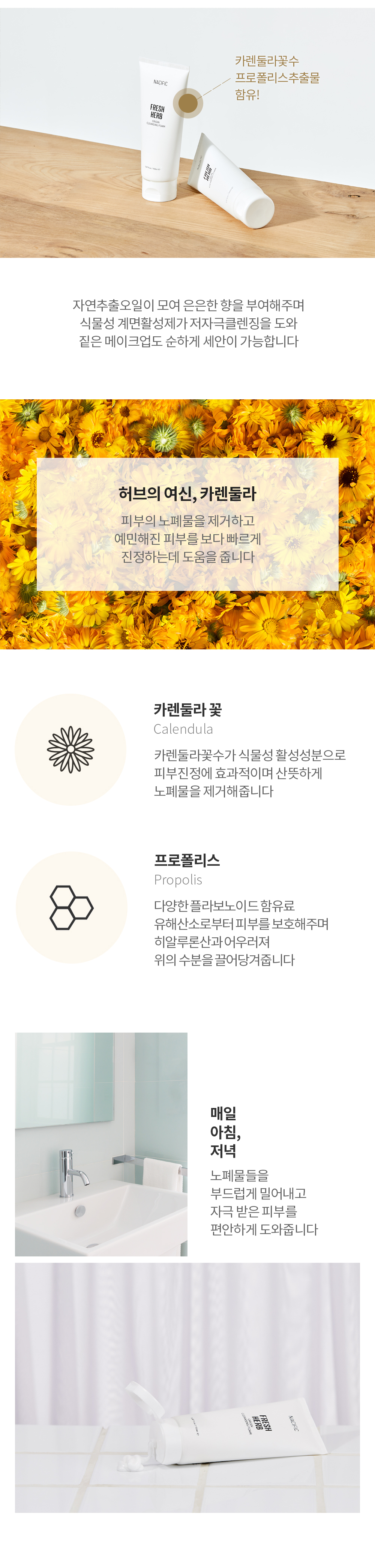 [NACIFIC] Fresh Herb Origin Cleansing Foam Calendula 150ml – Made in Korea | Gentle Deep Cleanser with Calendula & Propolis