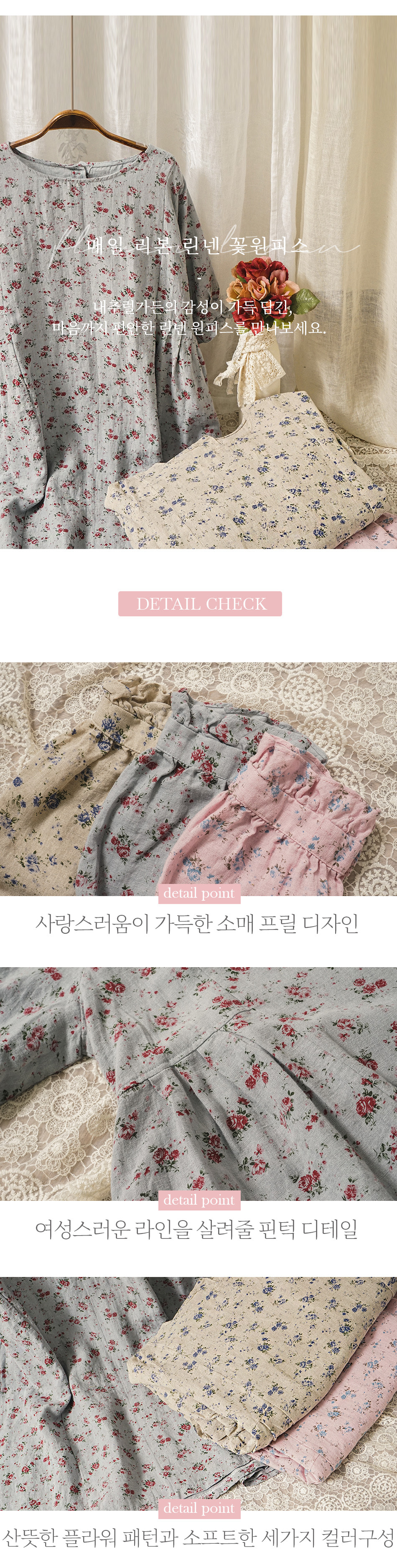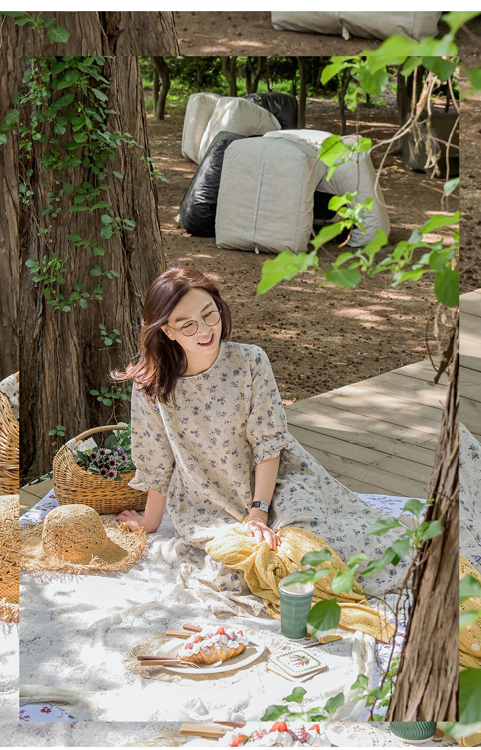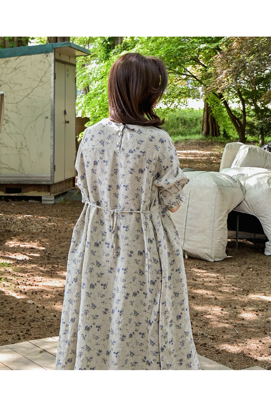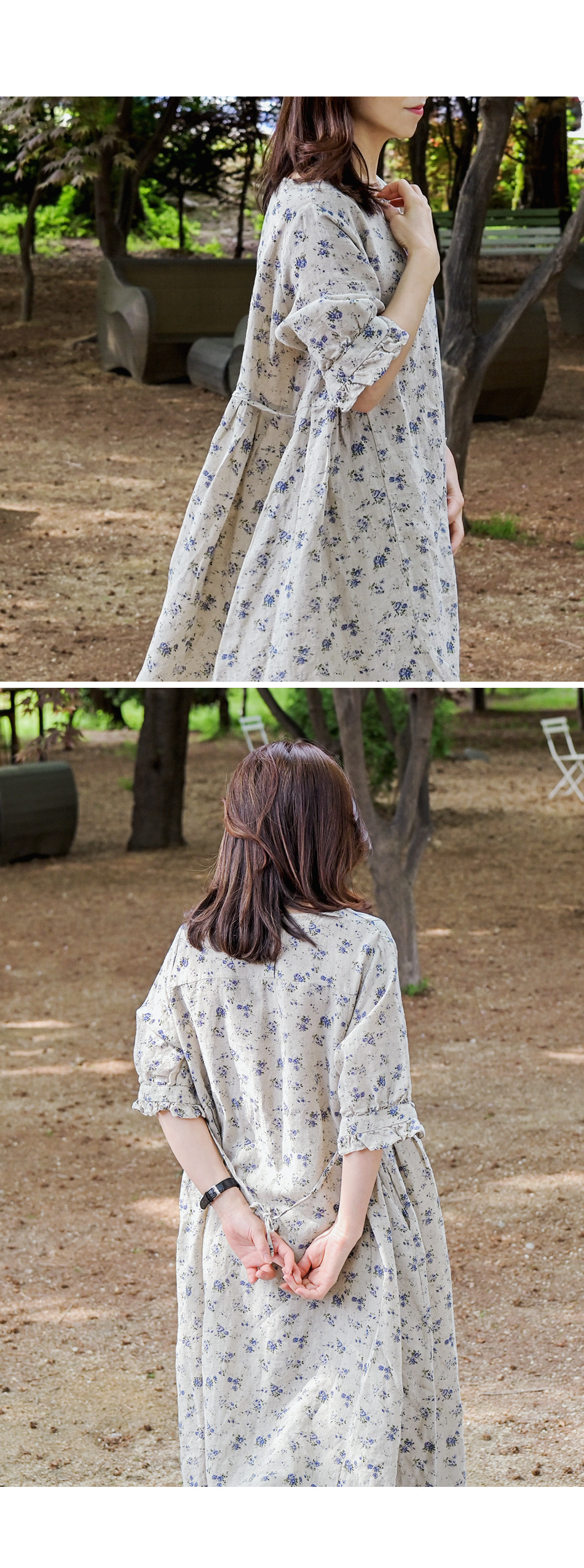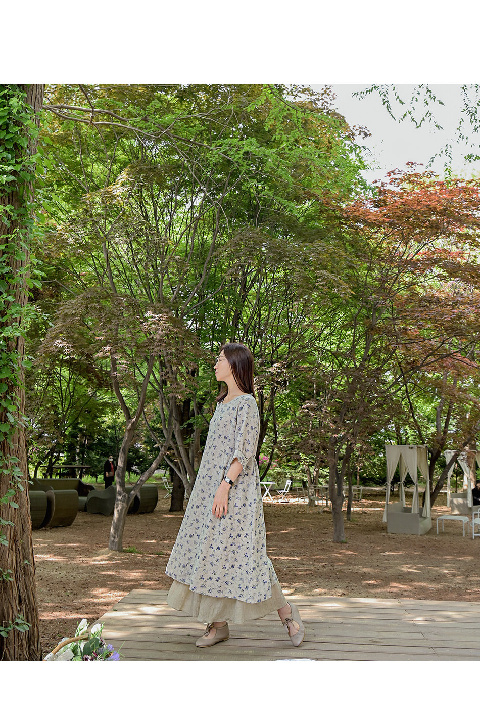 [Natural Garden] MADE N_ Ribbon linen flower dress_ Comfortable and lovely linen dress, Made in Korea