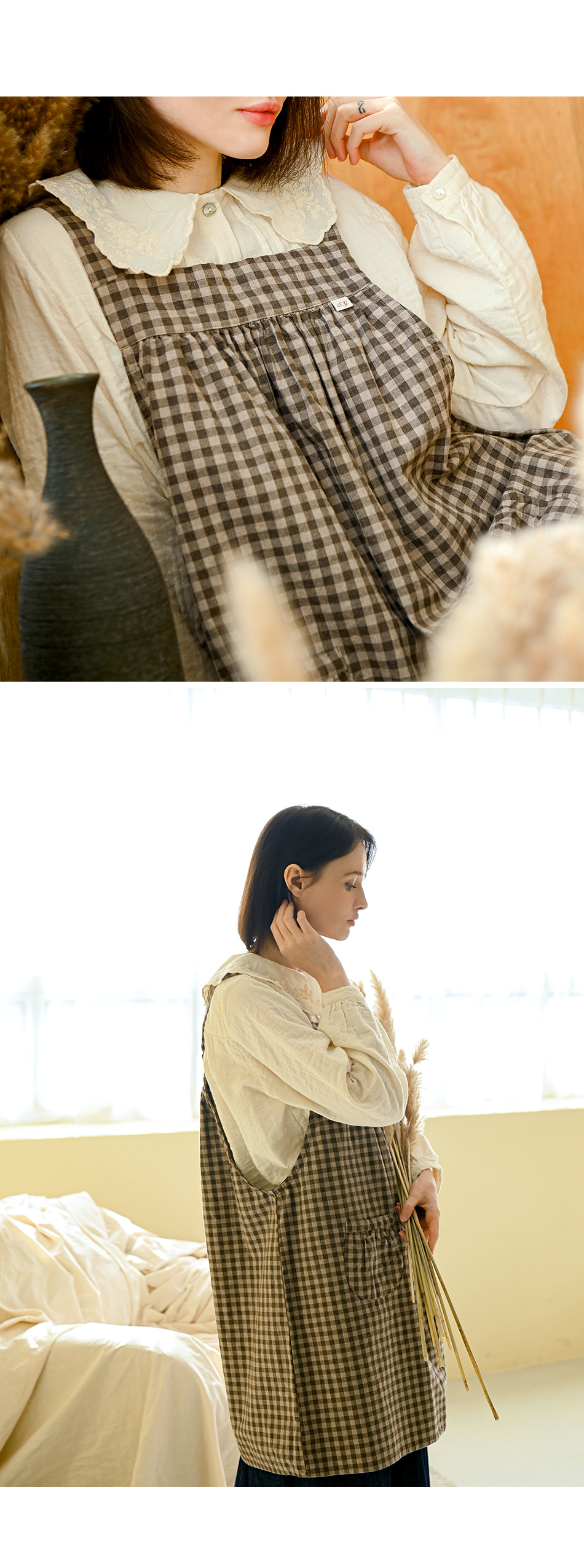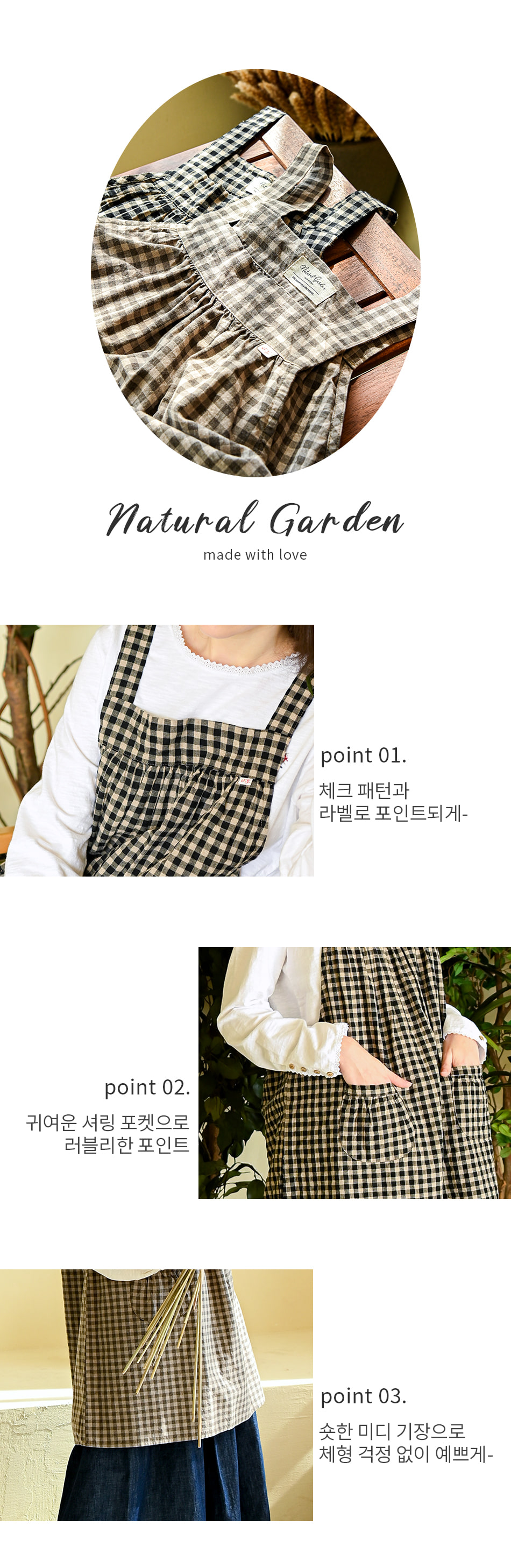 [Natural garden] MADE N Check Short Apron Dress_High-quality material, washing processing, soft cotton fabric_ Made in KOREA
