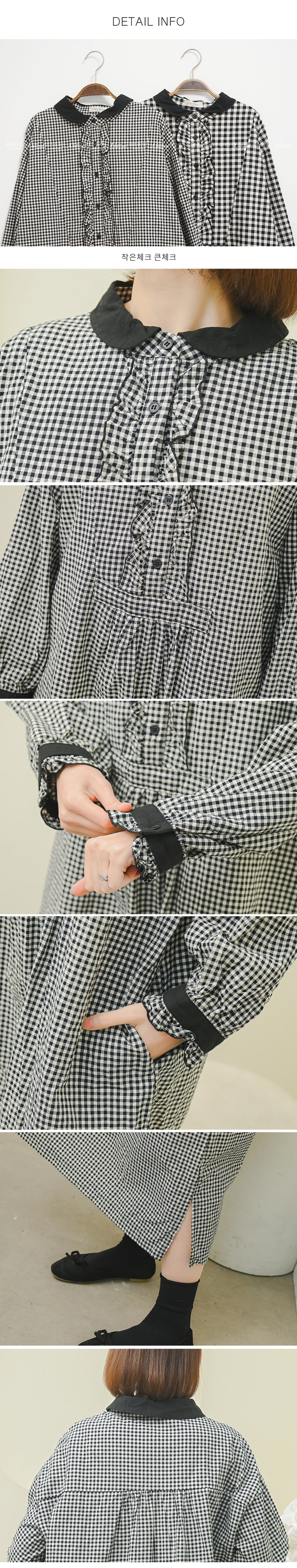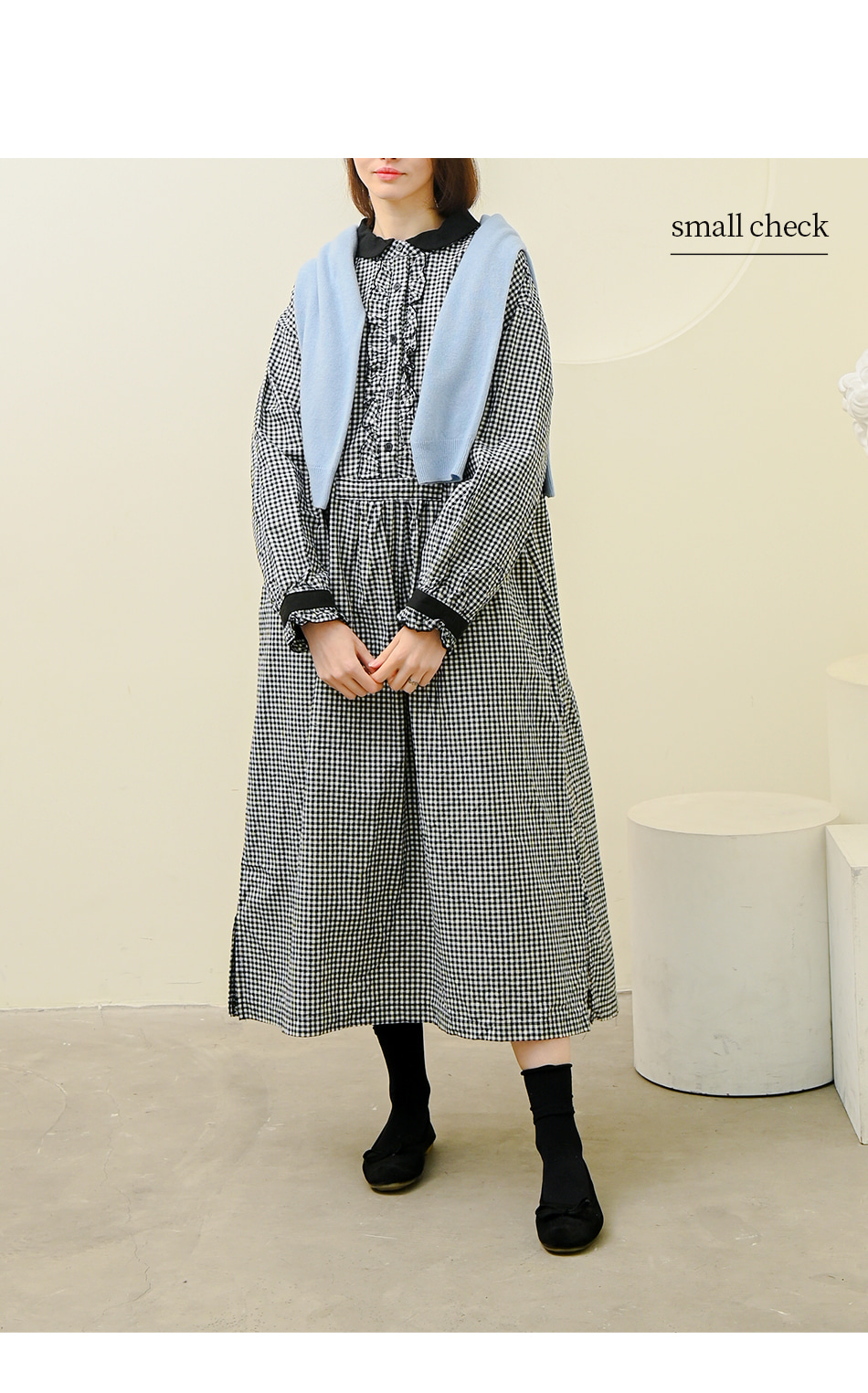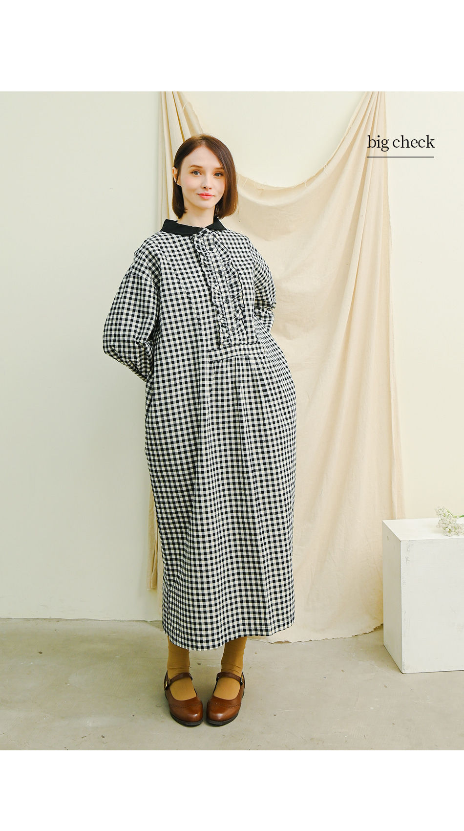 [Natural Garden] MADE N Cube Check Color Matching Dress_High quality material, sleeve color & ruffles, practical pockets_ Made in KOREA
