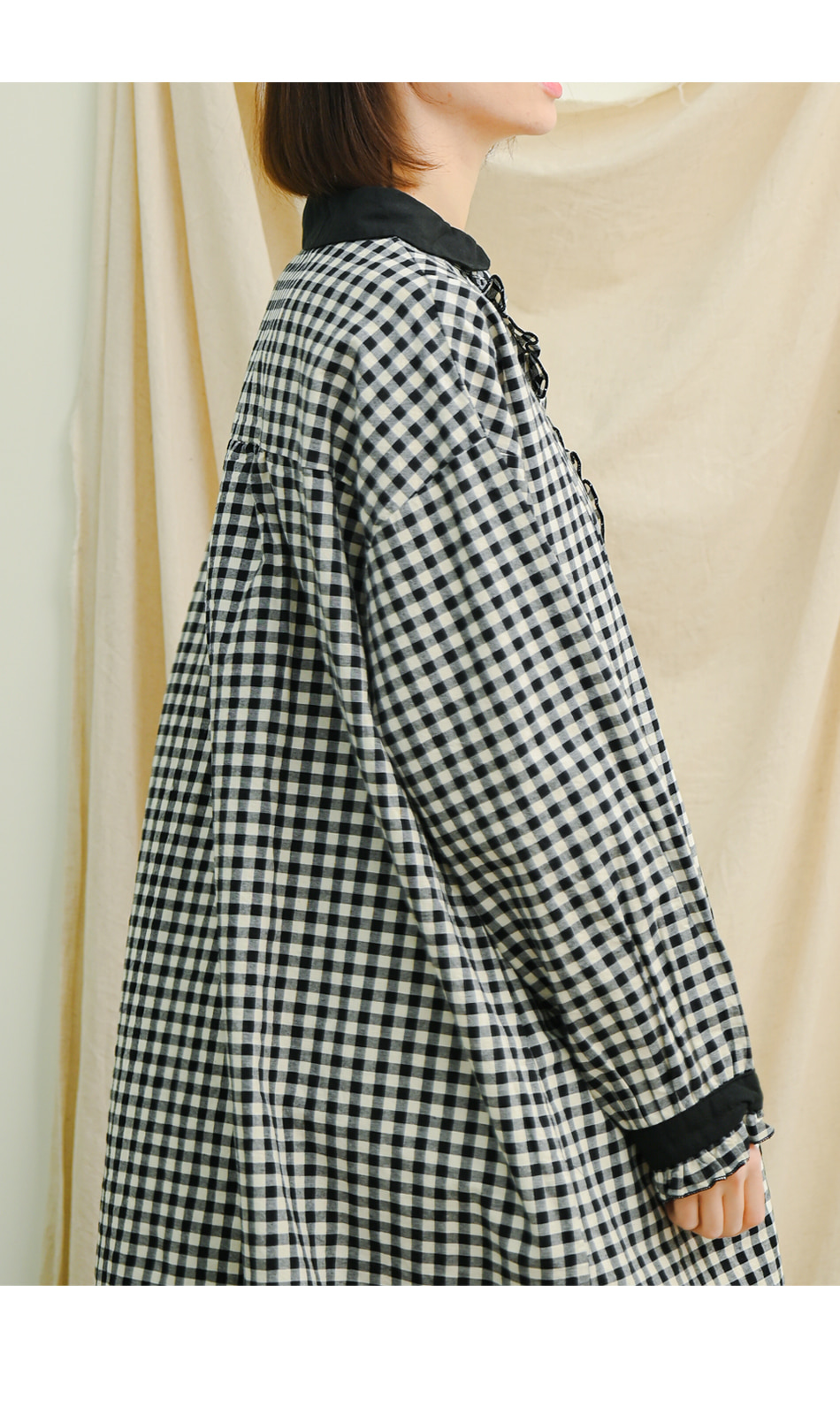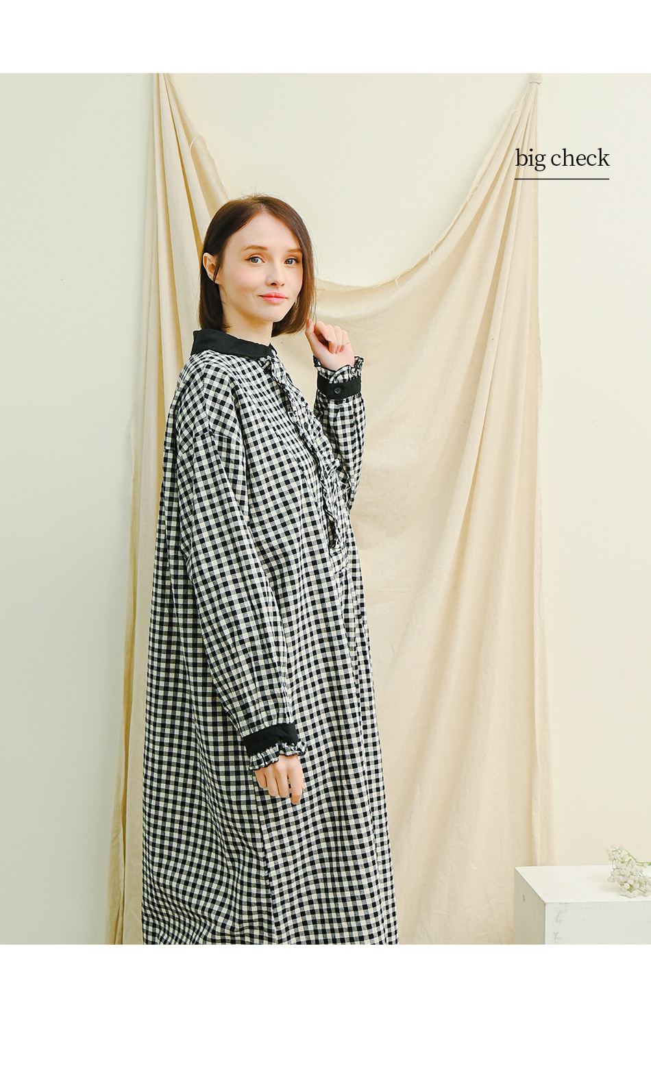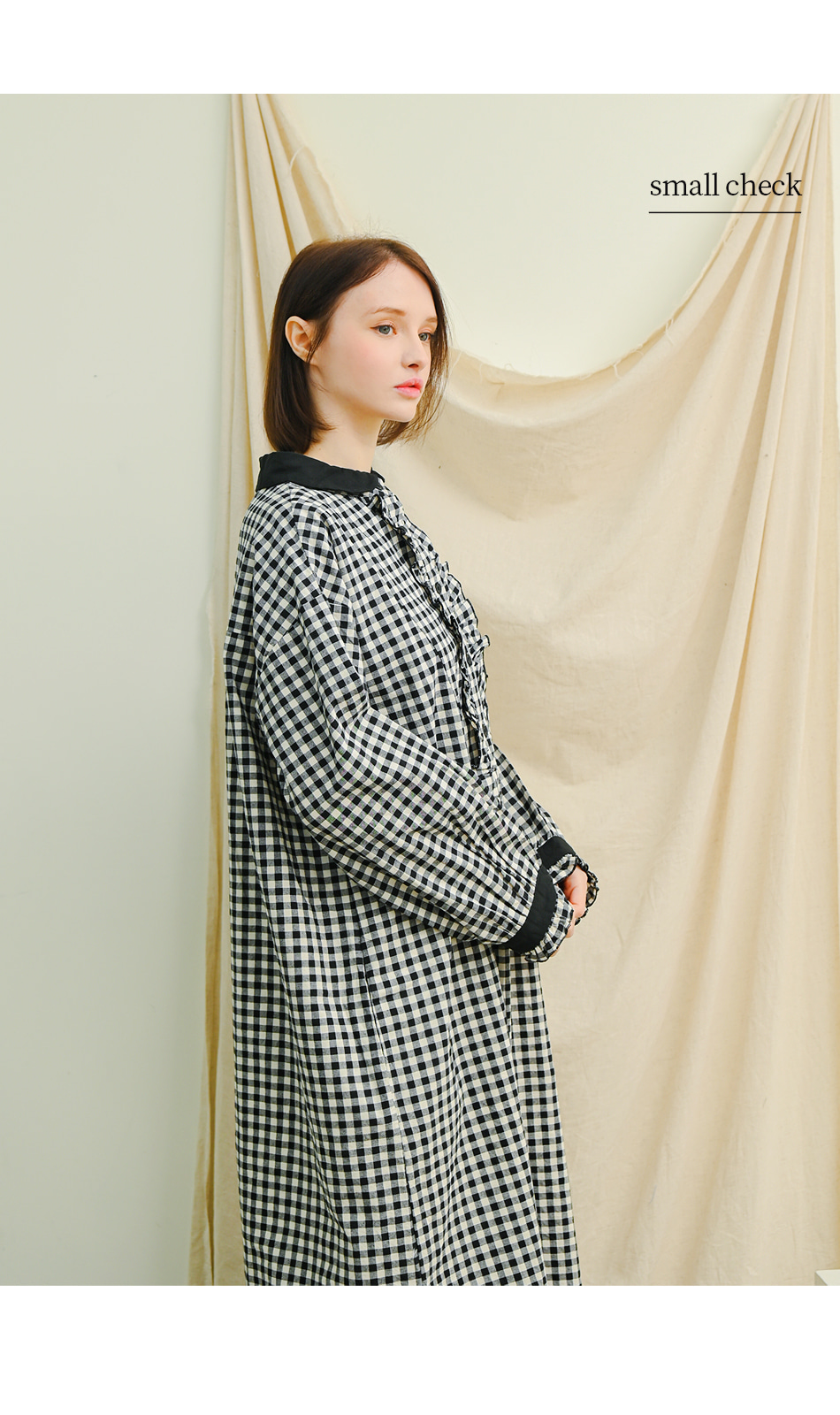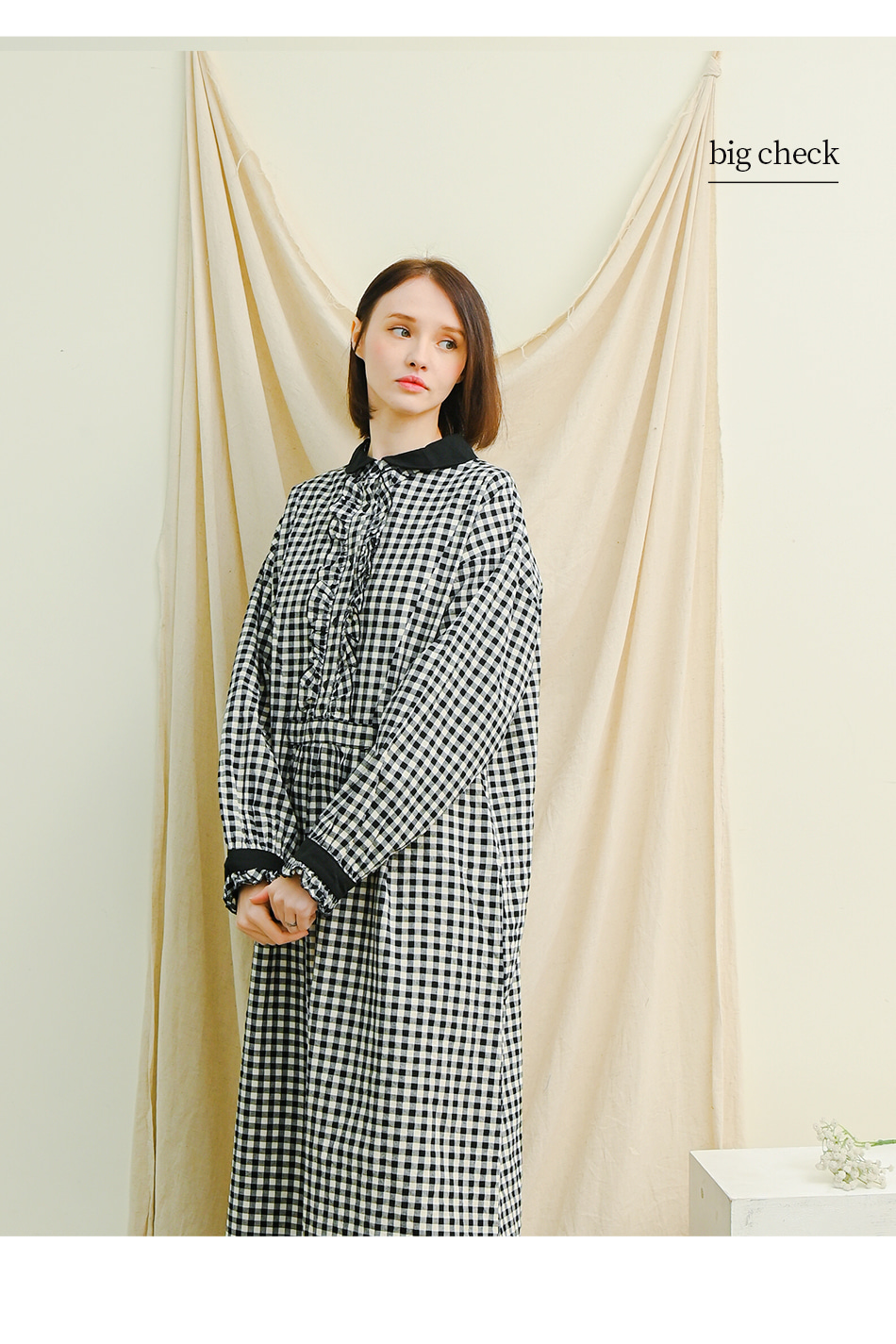 [Natural Garden] MADE N Cube Check Color Matching Dress_High quality material, sleeve color & ruffles, practical pockets_ Made in KOREA