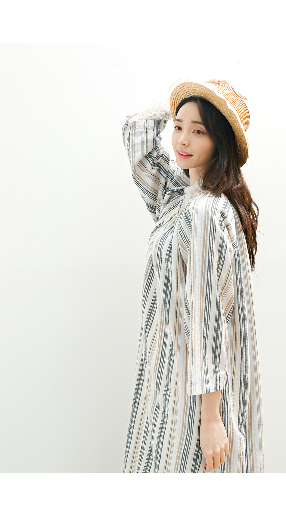 [Natural Garden] MADE N Gatherneck Stripe Linen Dress_High-quality materials, linen materials, signature products_ Made in KOREA