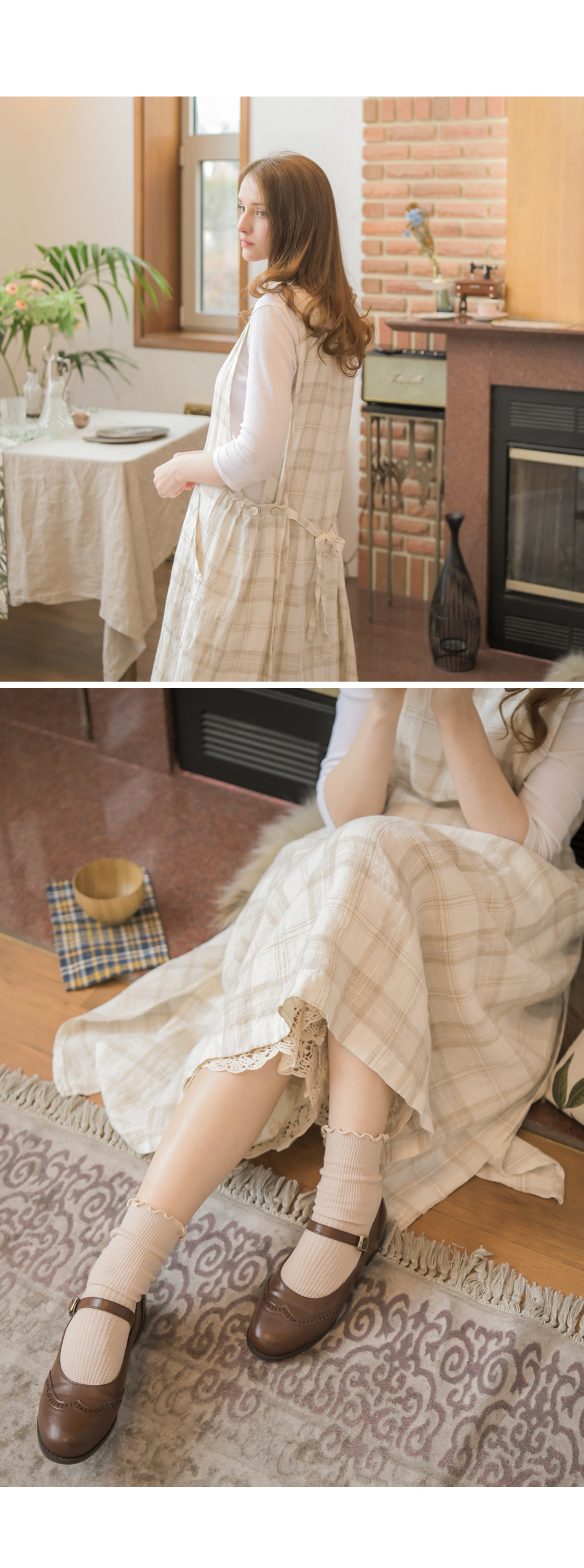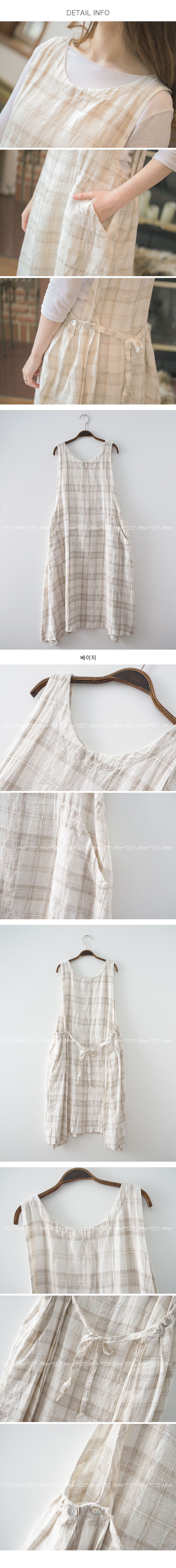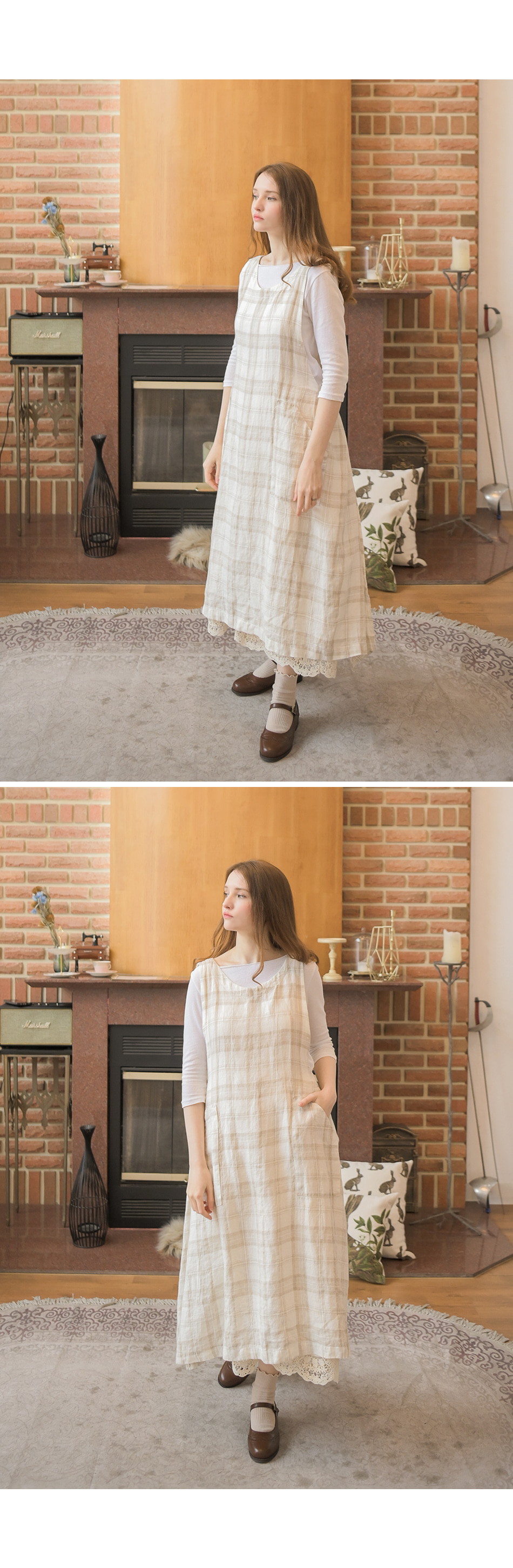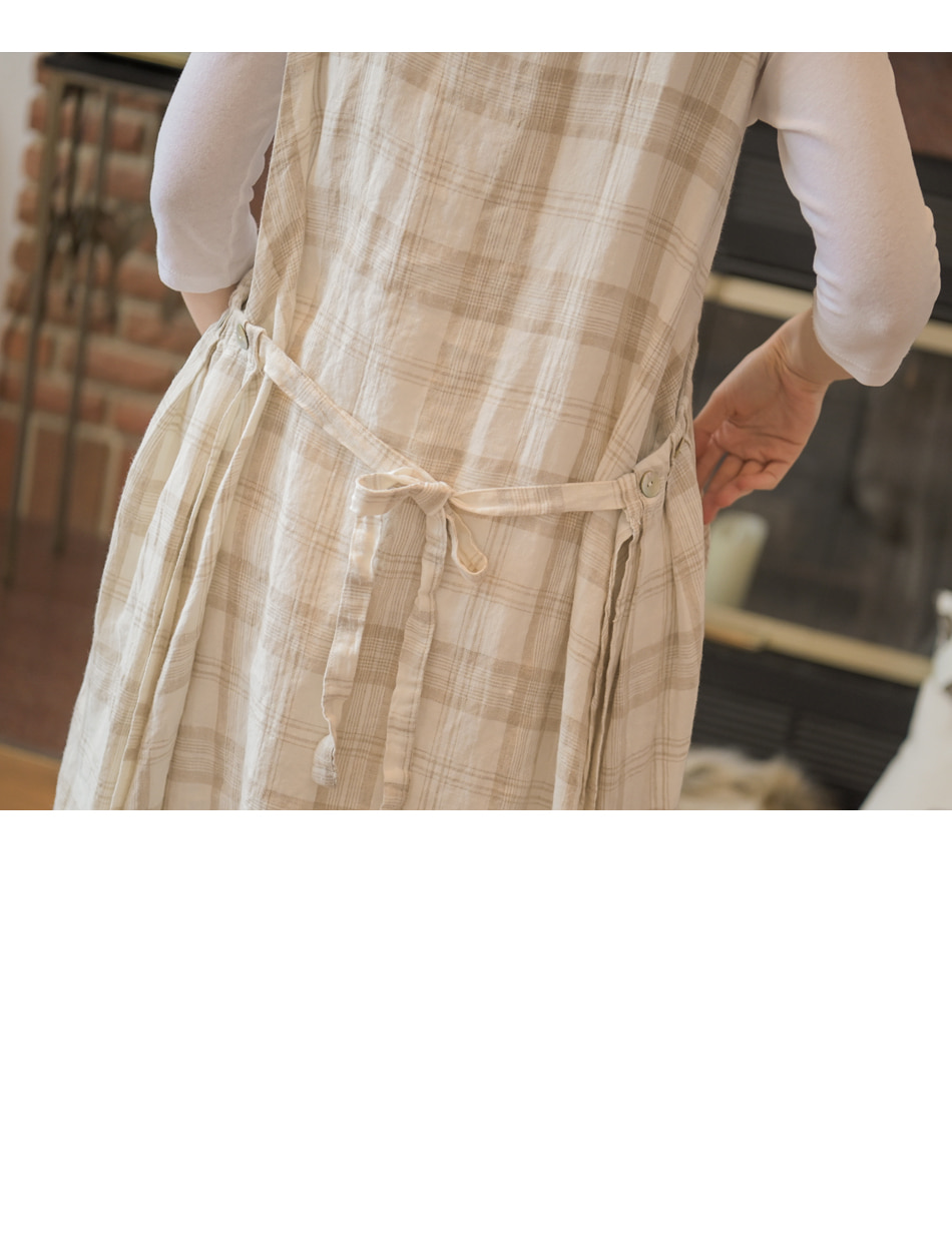 [Natural Garden] MADE N Lithuanian Linen Big Check Dress_High quality material, linen material, side slit mother-of-pearl button_ Made in KOREA