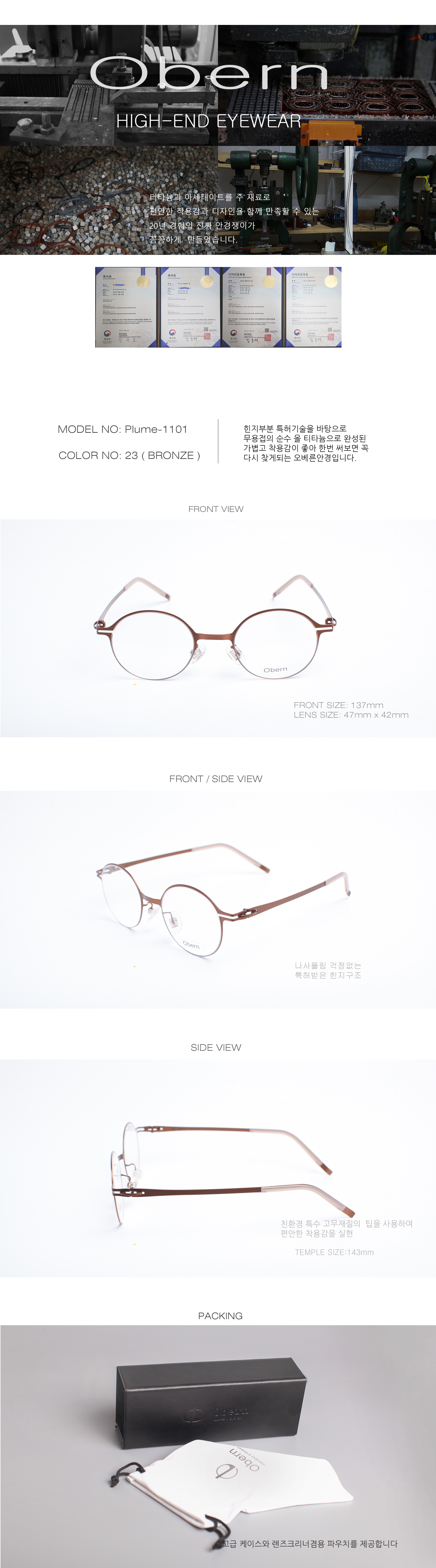 [Obern] Plume-1101 c23_ Premium Fashion Eyewear, All Beta Titanium Frame, Comfortable Hinge Patent, Superlight _ Made in KOREA