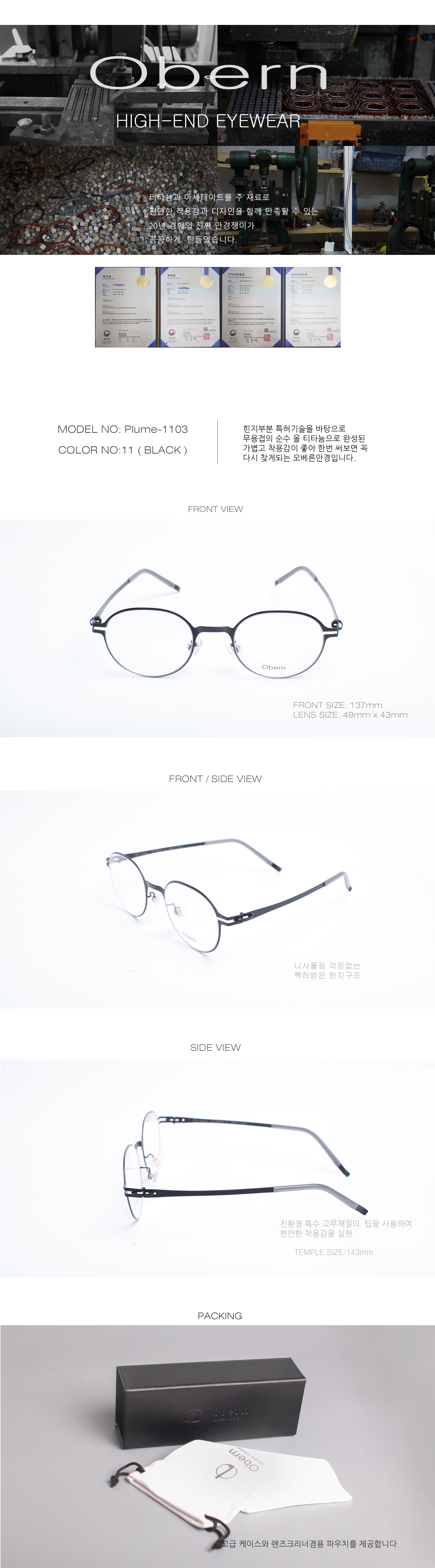 [Obern] Plume-1103 C11_ Premium Fashion Eyewear, All Beta Titanium Frame, Comfortable Hinge Patent, No Welding, Superlight _ Made in KOREA