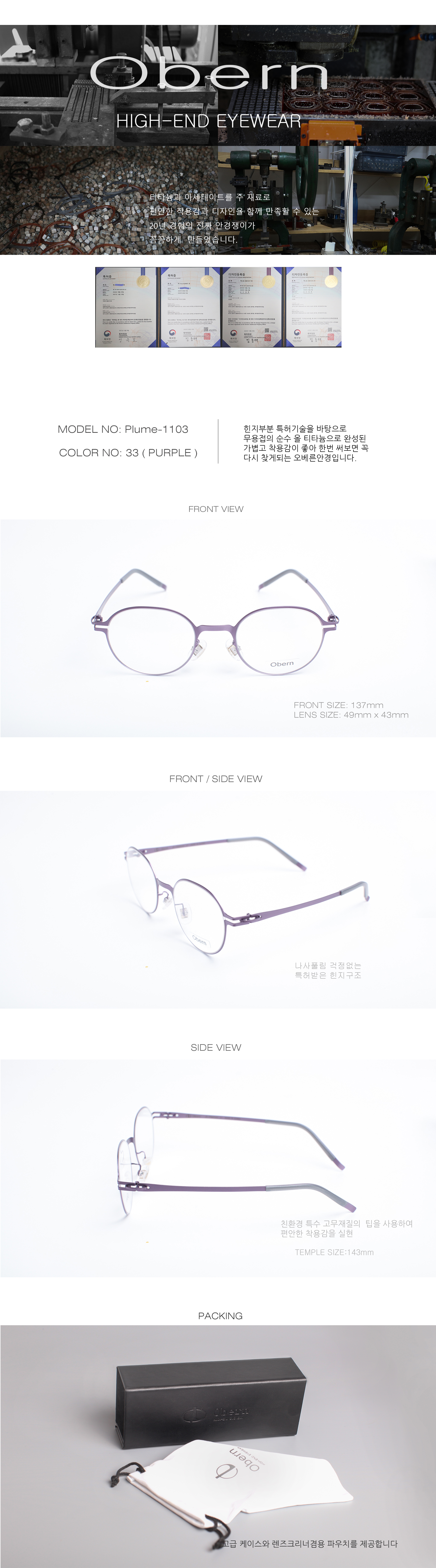 [Obern] Plume-1103 C33_ Premium Fashion Eyewear, All Beta Titanium Frame, Comfortable Hinge Patent, No Welding, Superlight _ Made in KOREA