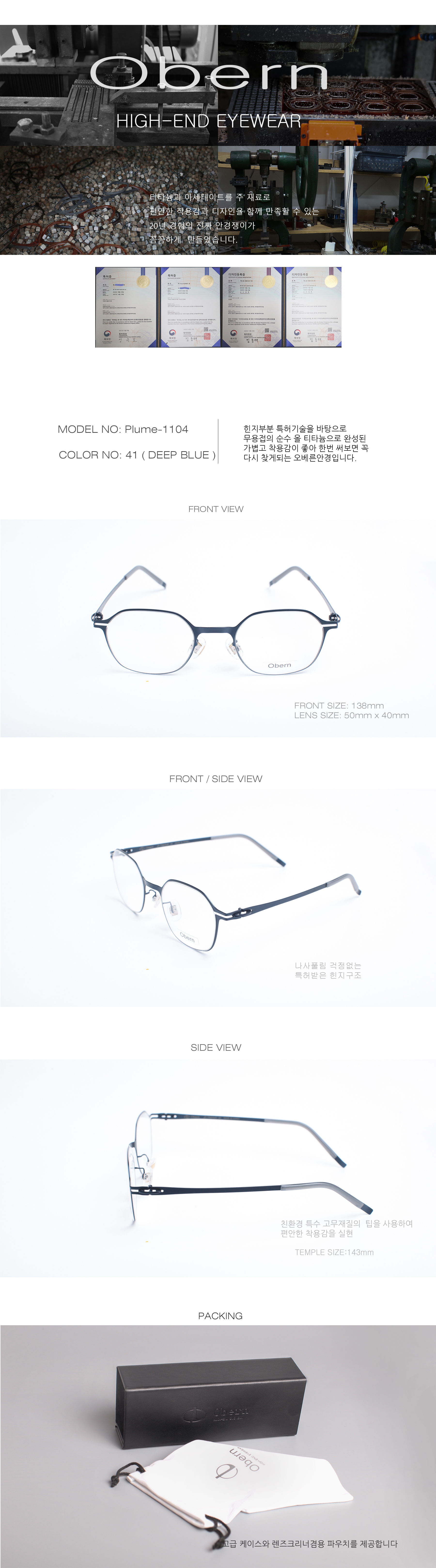 [Obern] Plume-1104 C41_ Premium Fashion Eyewear, All Beta Titanium Frame, Comfortable Hinge Patent, No Welding, Superlight _ Made in KOREA