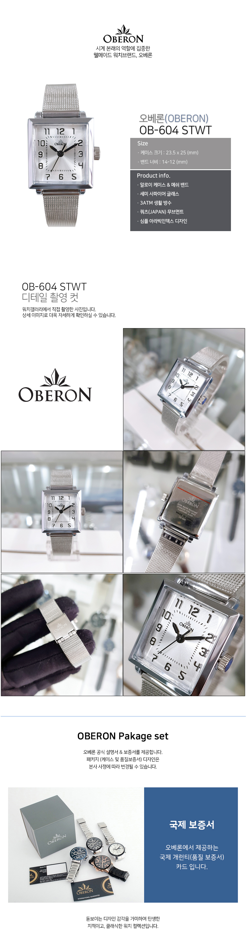 [OBERON] OB-604 STWT _ Women's Watch Ladies Stainless Steel Metal Mesh Strap Band, Square Watch, Japan quartz movement
