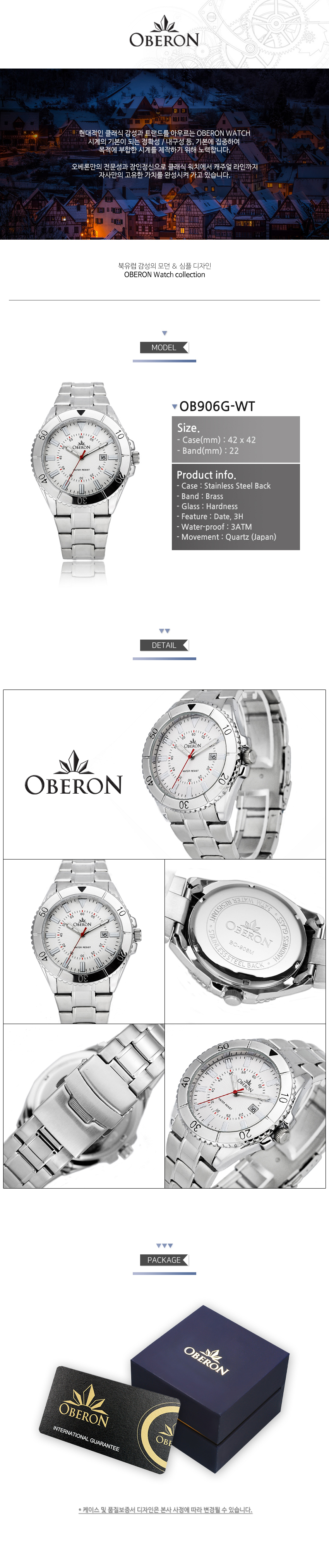 [OBERON] OB-906G WT _ Fashion Business Men's Watches With Stainless Steel Watch, 3 ATM Waterproof Quartz Watch For Men, Auto Date