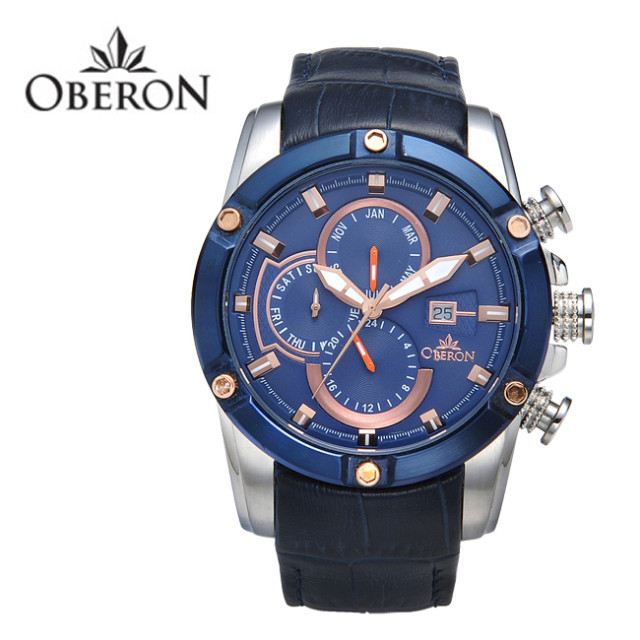 [OBERON] OB-912 STBL _ Fashion Business Men's Watches with Leather Watch, 5 ATM Waterproof, Chronograph Quartz Watch for Men, Auto Date