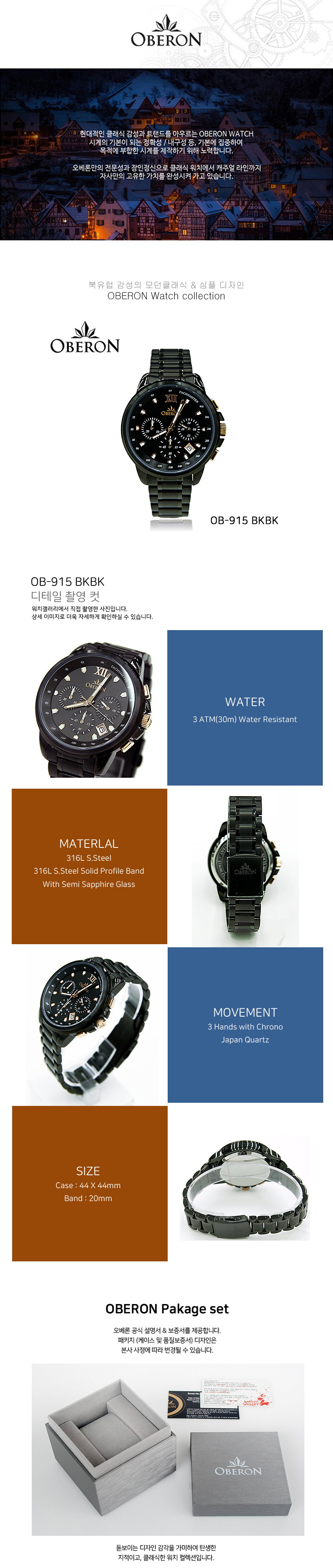 [OBERON] OB-915 BKBK _ Fashion Business Men's Watches, Cronograph, 3 ATM Waterproof, Japan Movement