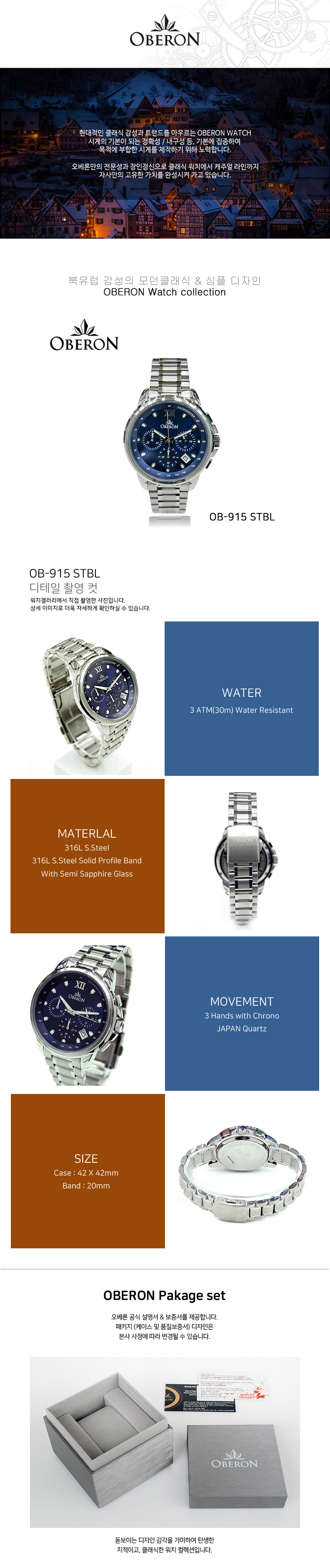 [OBERON] OB-915 STBL _ Fashion Business Men's Watches, Cronograph, 3 ATM Waterproof, Japan Movement