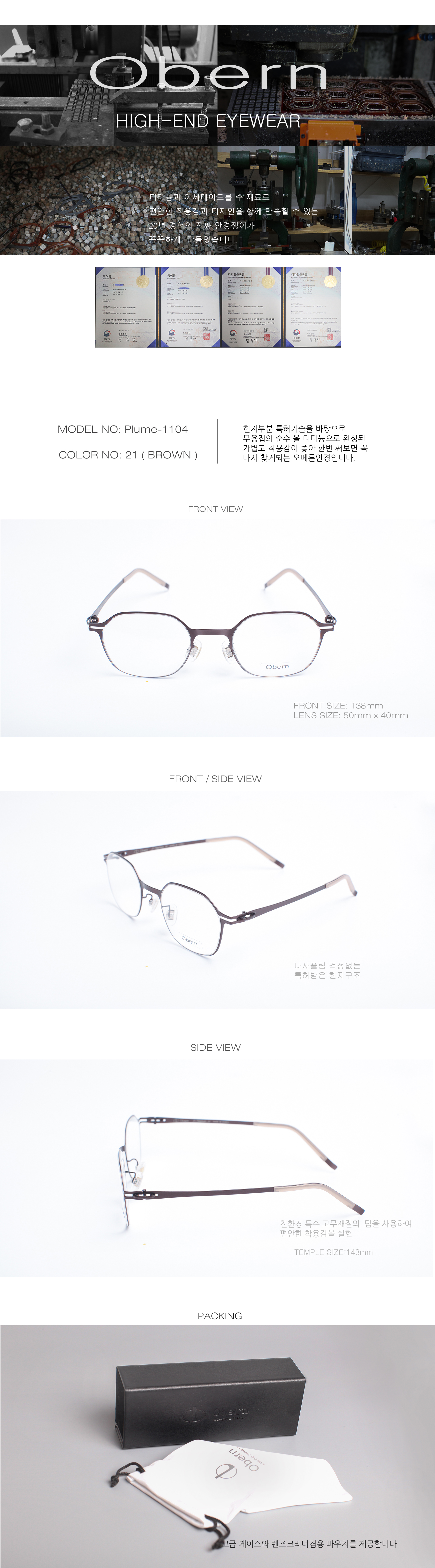 [Obron] Plume-1104 C21_ Premium Fashion Eyewear, All Beta Titanium Frame, Comfortable Hinge Patent, No Welding, Superlight _ Made in KOREA